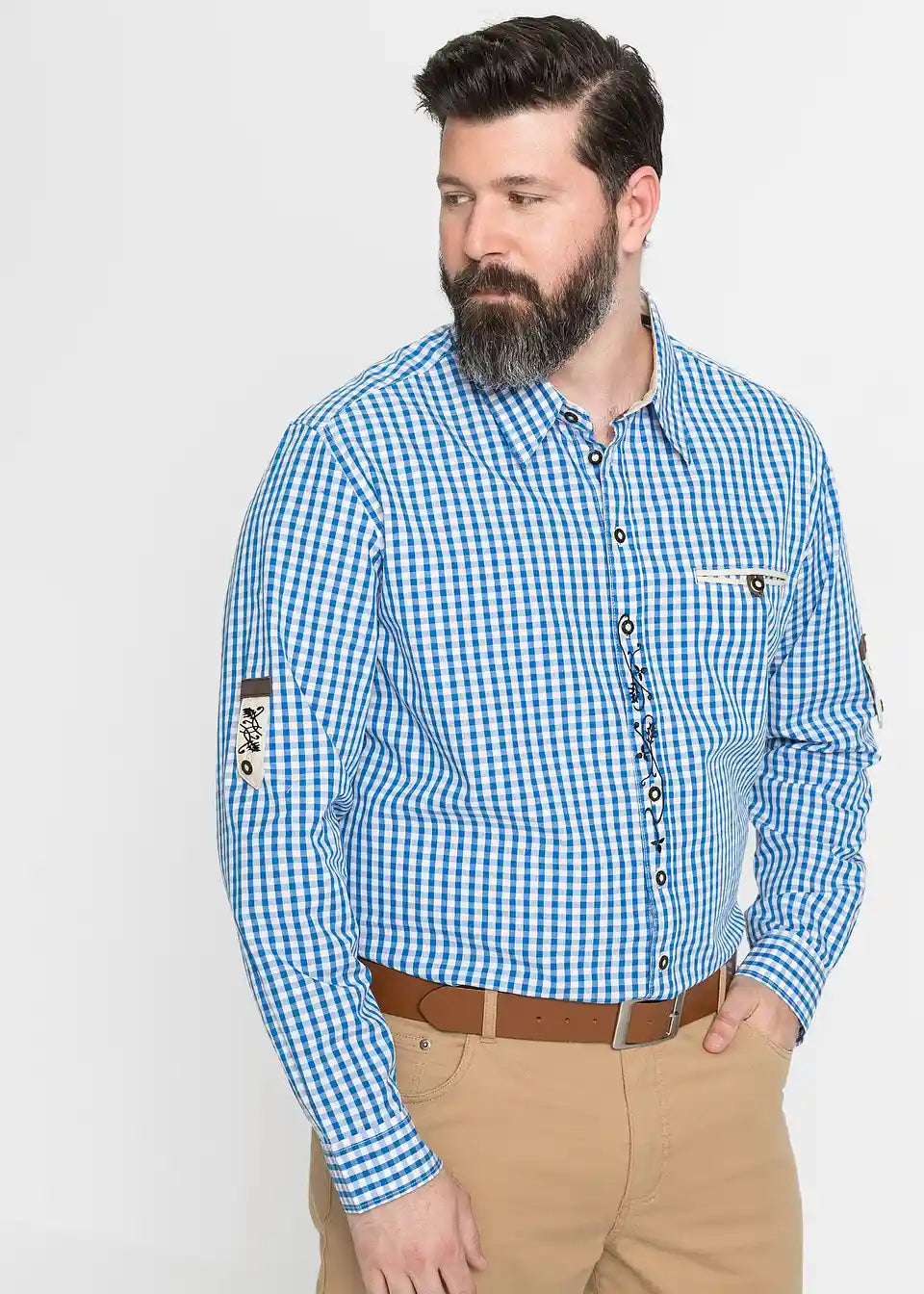 Bavarska tradicionalna košulja s preklopnim rukavima i kariranim uzorkom, savršena za Wiesn