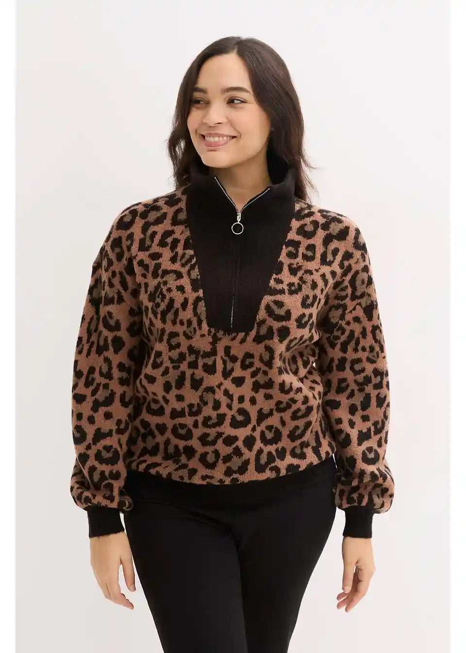 meki troyer-pulover s detaljem patentnog zatvarača sprijeda na ovratniku i modernim jacquard-uzorkom
