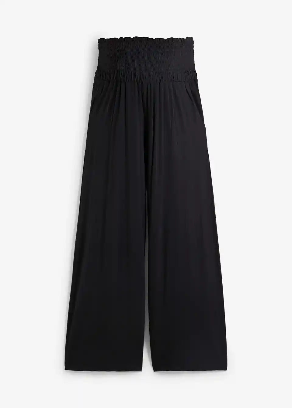 Mekane hlače od jerseya izrađene od mekane viskoze s blagim dodatkom rastezljivosti za visoku razinu udobnosti, s pripijenim smock pojasom koji se nježno prilagođava svakom mjesecu trudnoće. S praktičnim prednjim džepovima. Udoban kroj sa širokim nogavicama koje ne prekrivaju gležnjeve.
