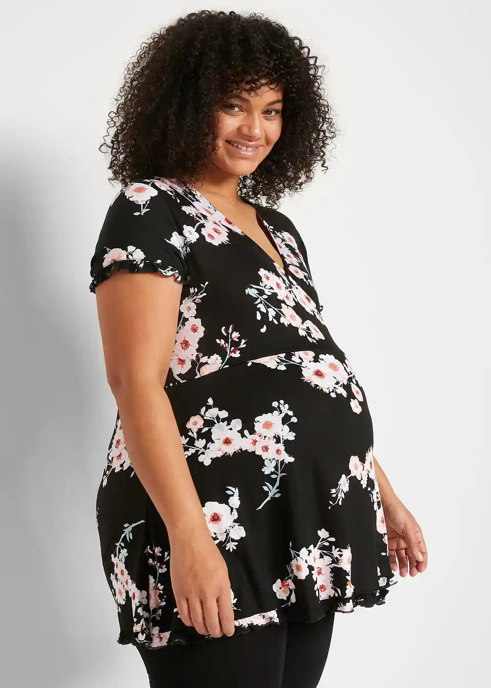Majica-tunika za trudnoću s funkcijom dojenja, cvjetnog uzorka