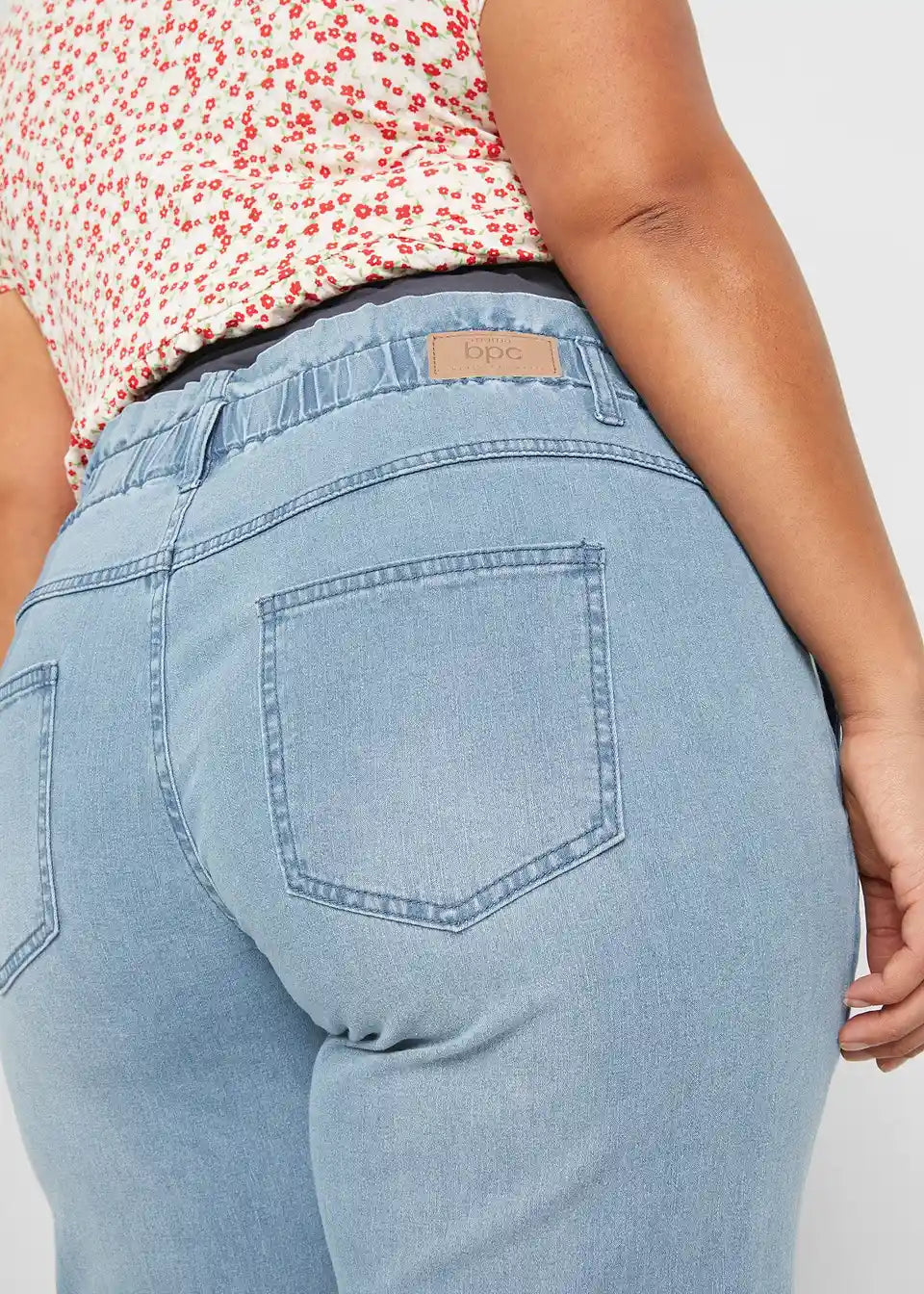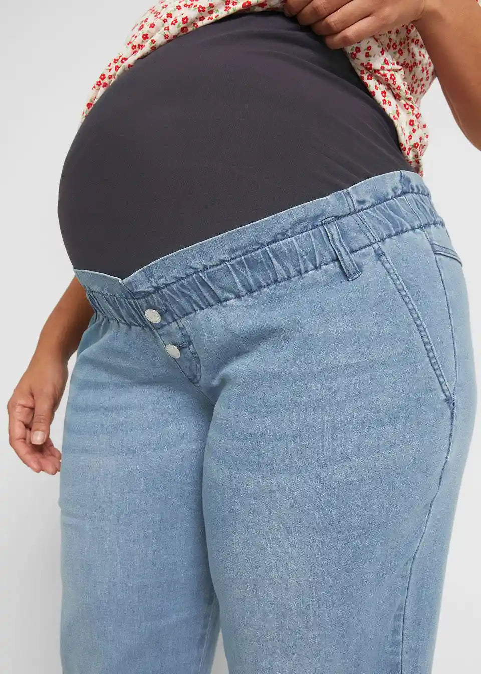 Ove trudničke traperice od održivog organskog pamuka s dodatkom elastana pružaju savršenu udobnost i fleksibilnost tijekom cijele trudnoće. Elastični pojas nježno se prilagođava rastućem trudničkom trbuhu, osiguravajući udobno i potporu pružajuće pristajanje. Sa svojom modernom 7/8 dužinom, traperice su svestrani osnovni komad koji se može kombinirati kako u ležernim, tako i u elegantnijim outfitima. Mekana tkanina ugodno prianja uz kožu i jamči savršeno pristajanje koje je i održivo i moderno – za buduće majke koje cijene kvalitetu i udobnost.