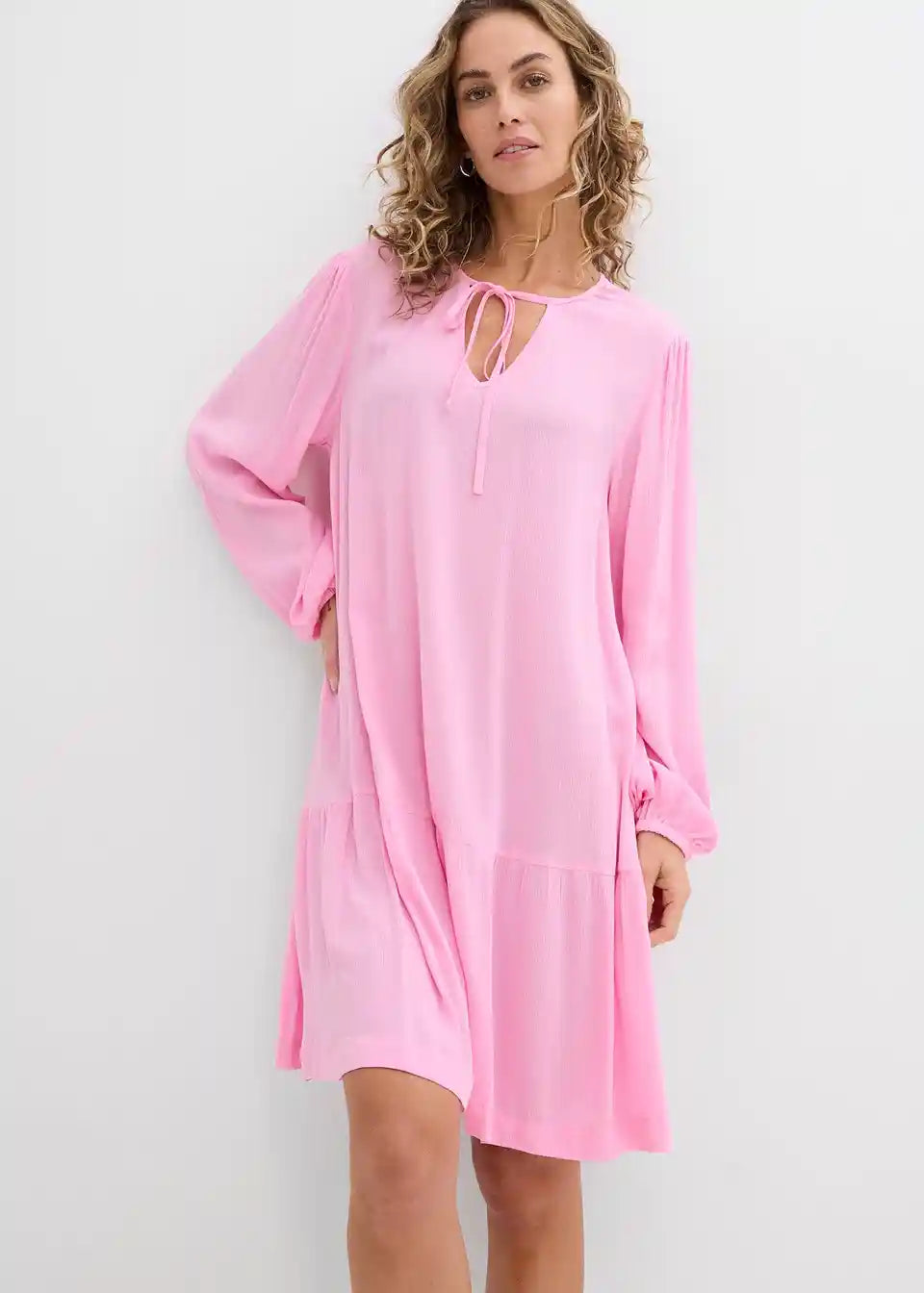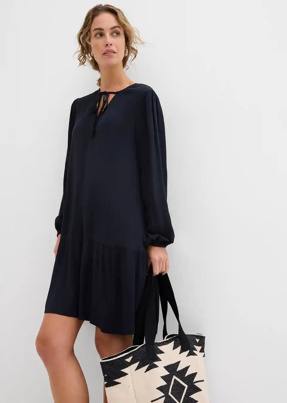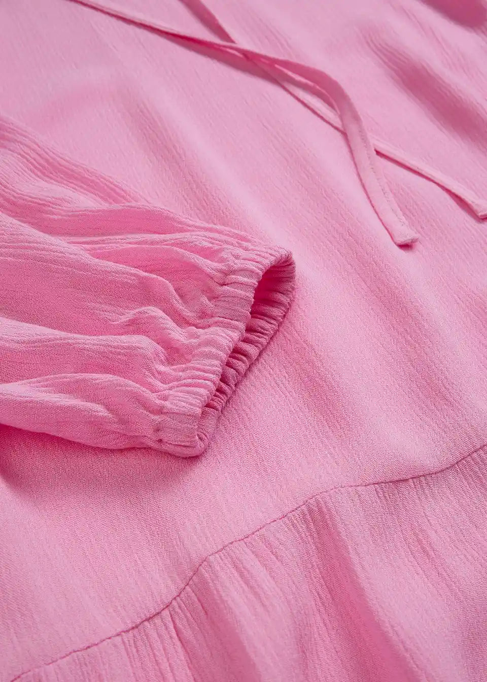 Kratka haljina s volanima i vrpcom za vezanje na izrezu