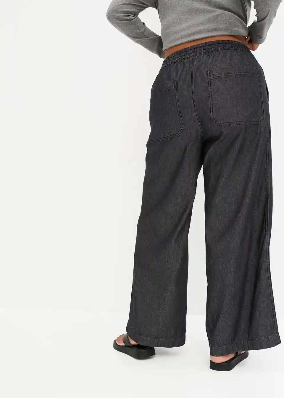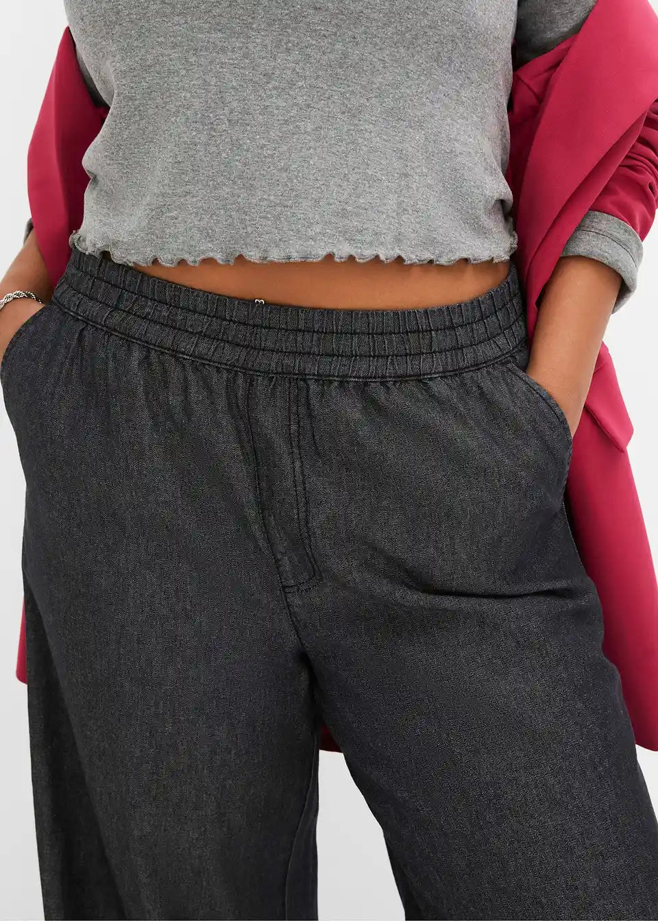 prozračne traperice sa širokim nogavicama i elastičnim pojasom