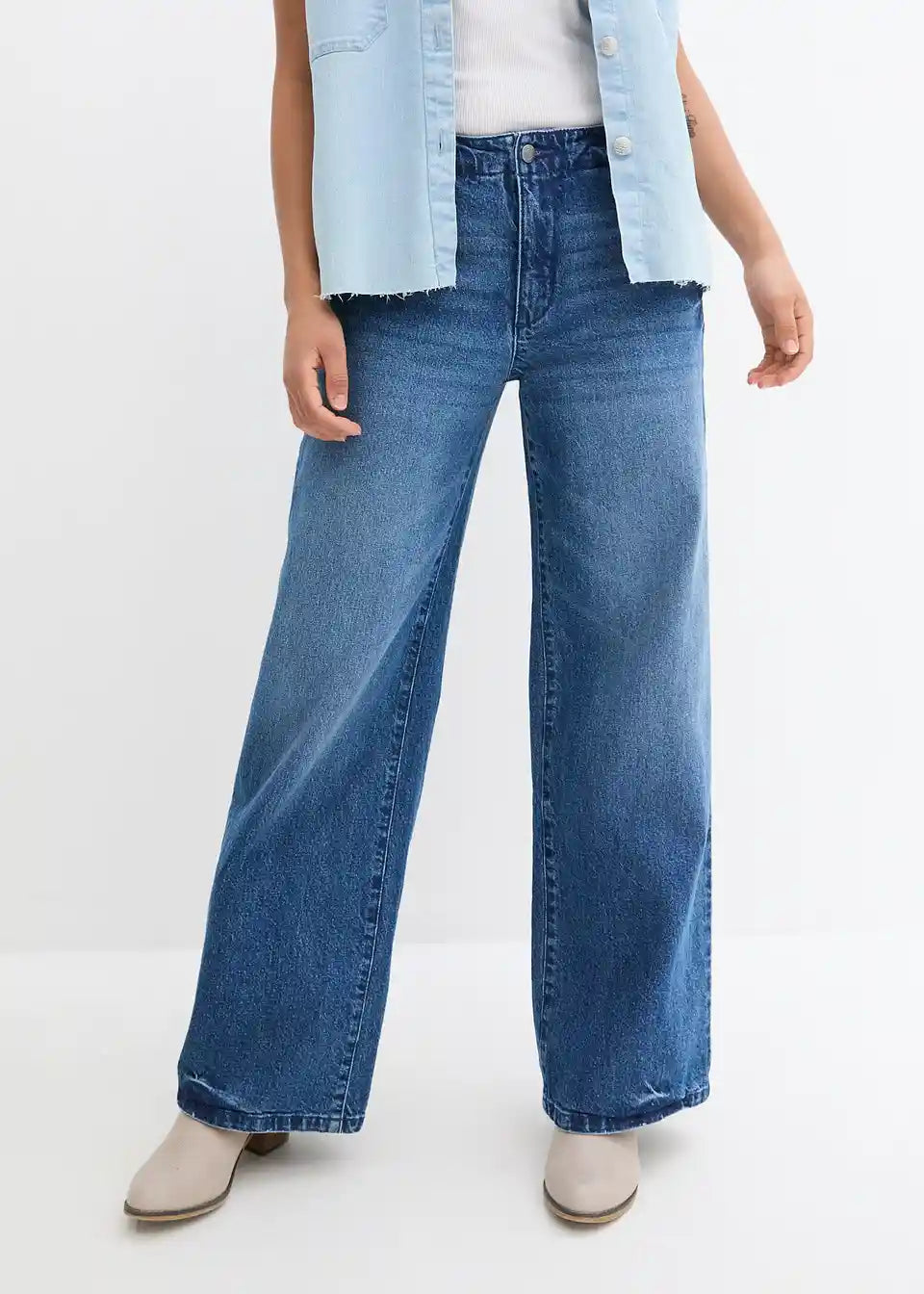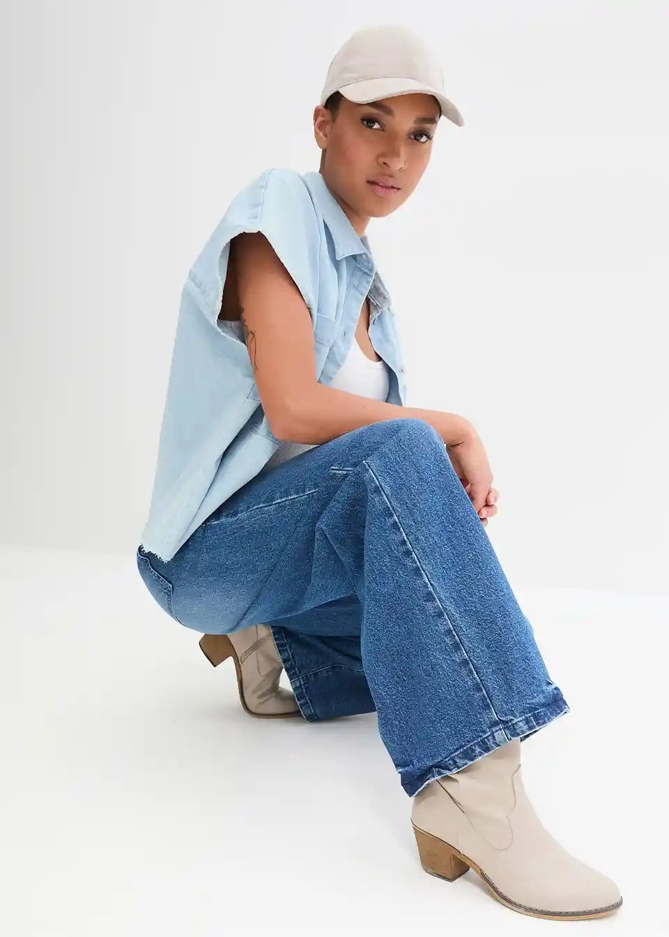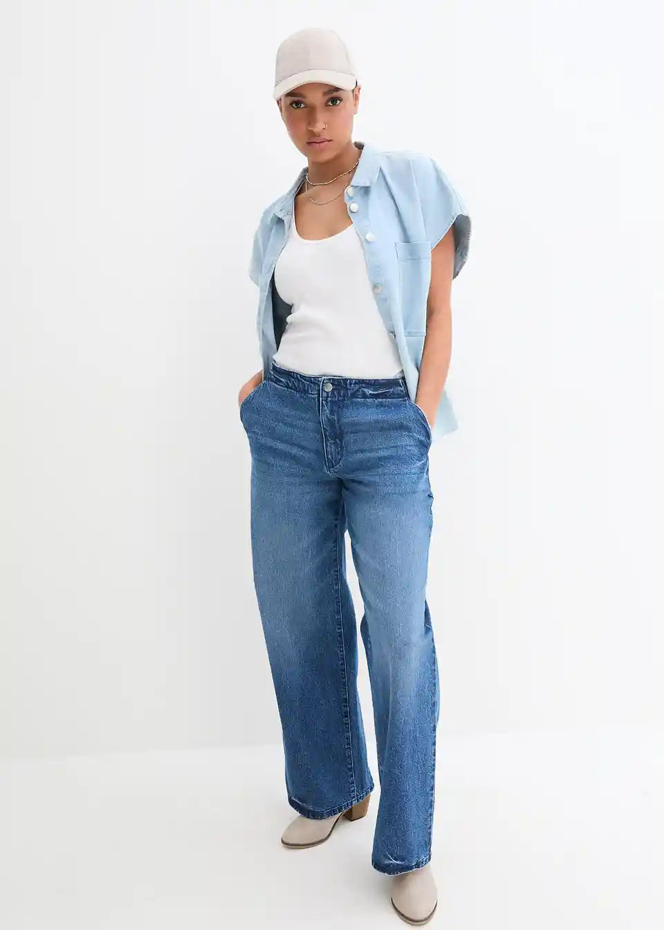 Traperica sa širokima nogavicama sa srednje visokim strukom od stretch materijala
