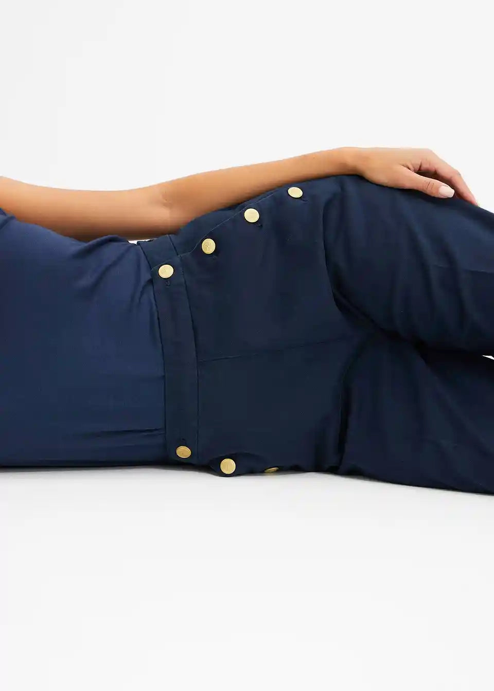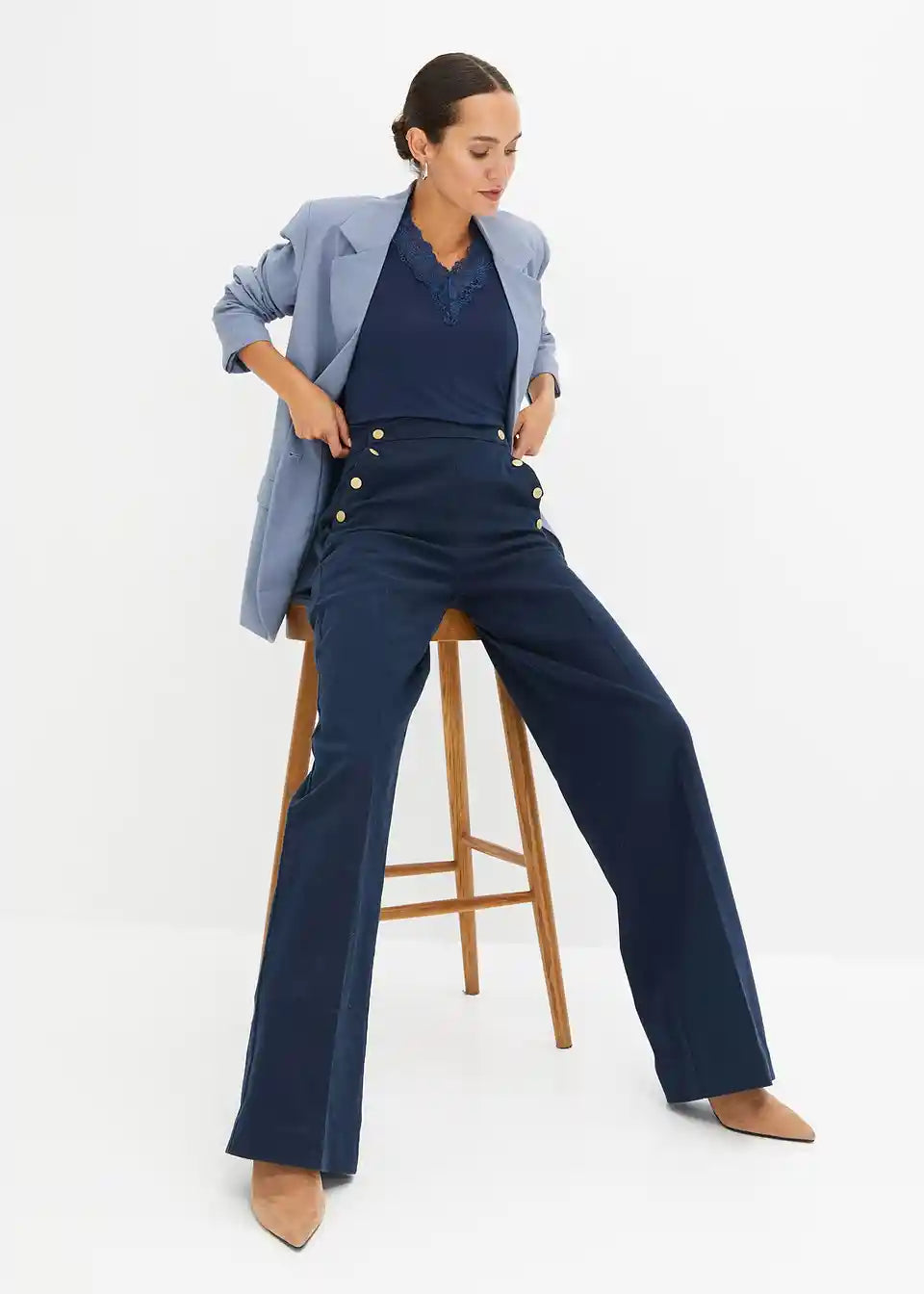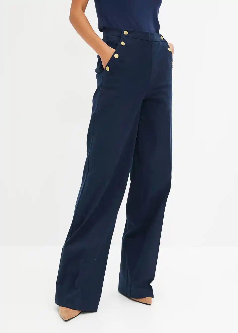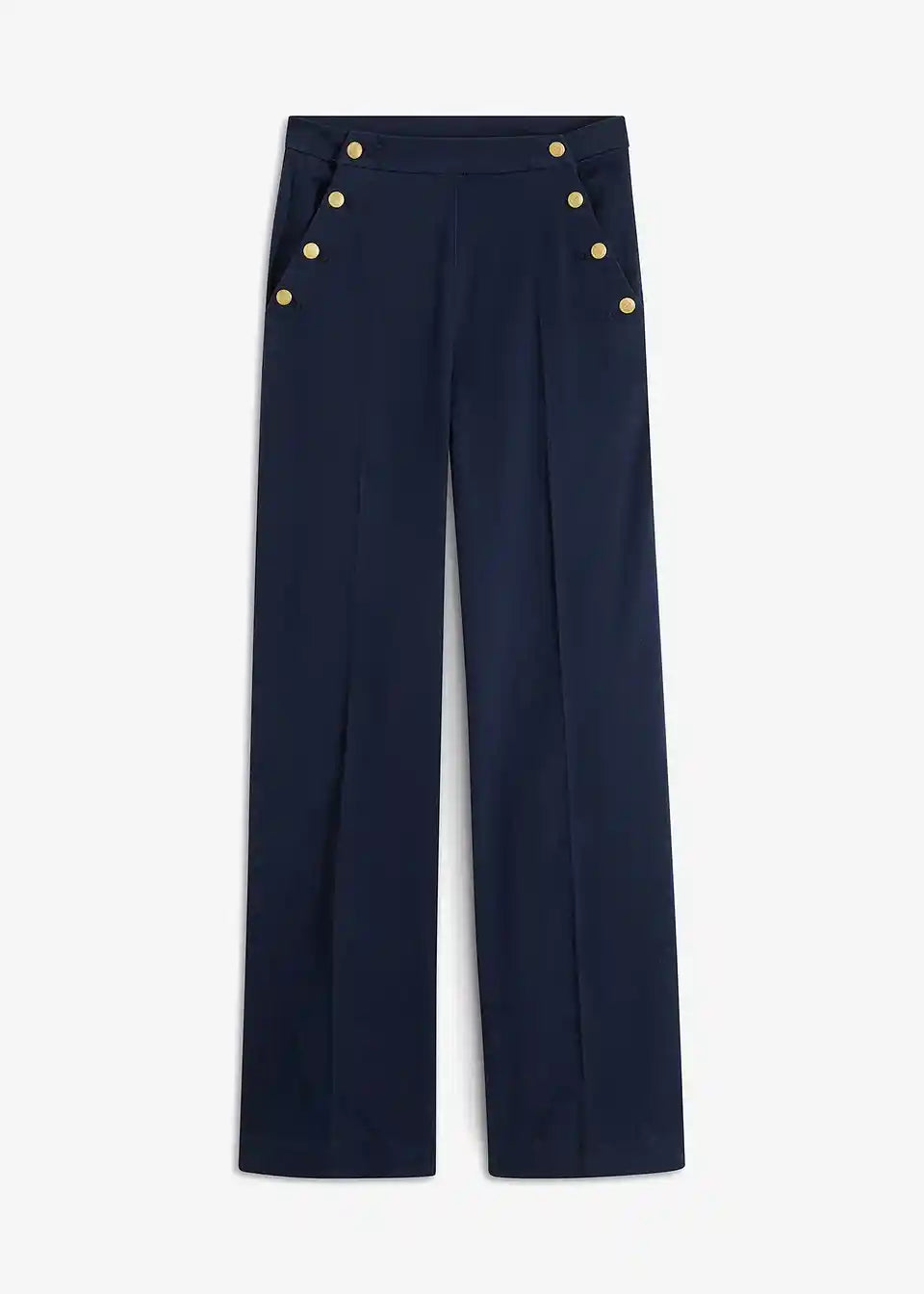 Hlače sa širokim nogavicama i gumbima zlatne boje