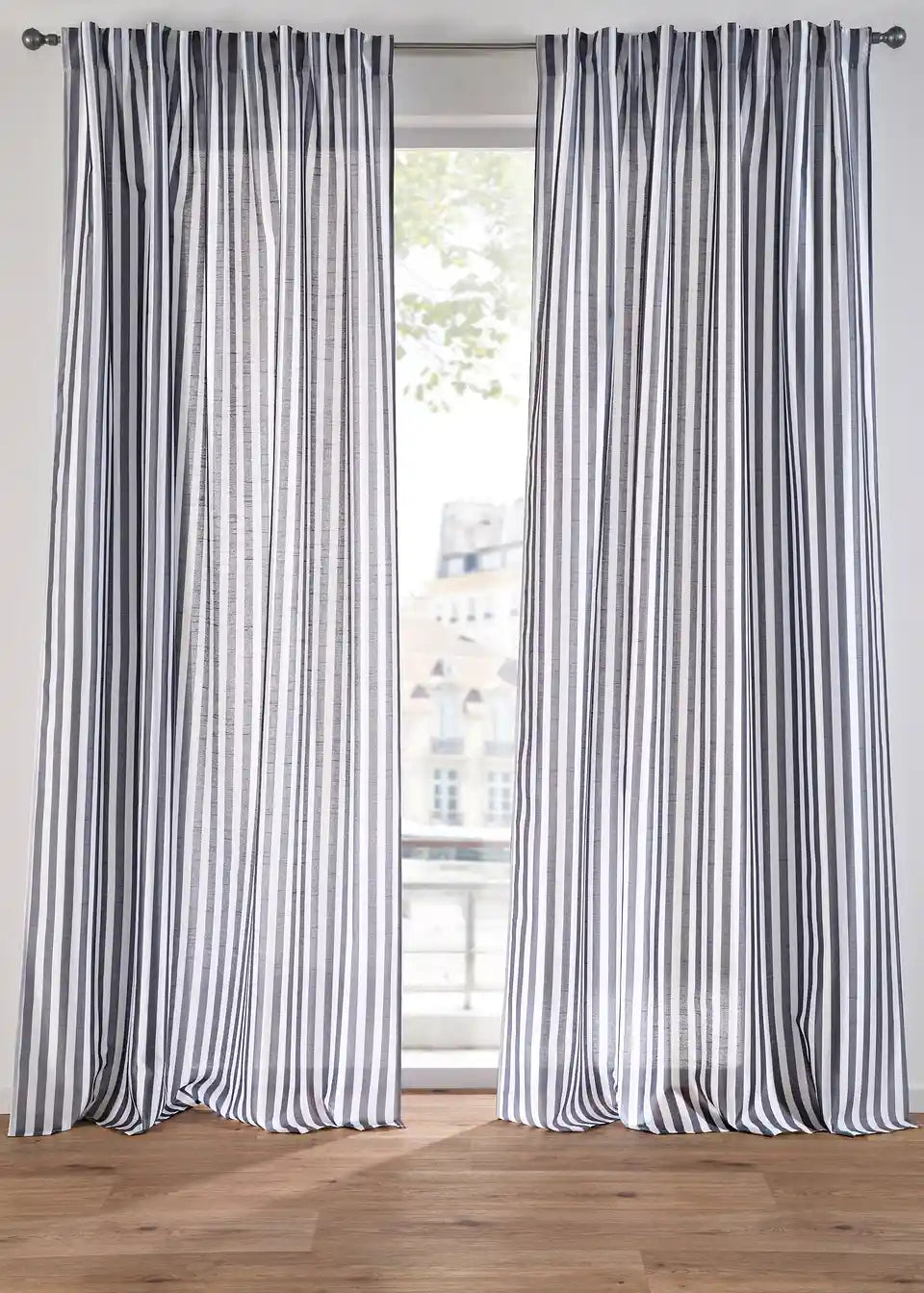 Otkrij našu elegantnu, neprozirnu zavjesu od visokokvalitetnog, sjajnog poliesterskog materijala s modernim uzdužnim prugama. Ova zavjesa nije samo funkcionalna u zaštiti od dosadnog sunčevog svjetla, već je i pravi ukras u svakoj prostoriji. Suptilne uzdužne pruge daju tvojoj sobi moderan i sofisticiran izgled, dok sjajna tkanina donosi dašak luksuza.