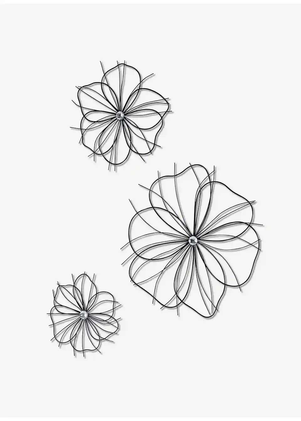 Elegantni zidni ukras služi kao prekrasan dekorativni element. Ovaj 3-dijelni set sastoji se od filigranskih cvjetnih tučaka ukrašenih akrilnim kamenom. Dolaze u različitim veličinama i zajedno čine prekrasnu cjelinu. Odlično se uklapaju, primjerice, iznad komode u dnevnom boravku. Također, mogu lijepo doći do izražaja iznad kreveta u spavaćoj sobi. Bez obzira na to jesu li obješeni pojedinačno ili kao set od tri komada, ovaj elegantni zidni ukras privlači poglede.
