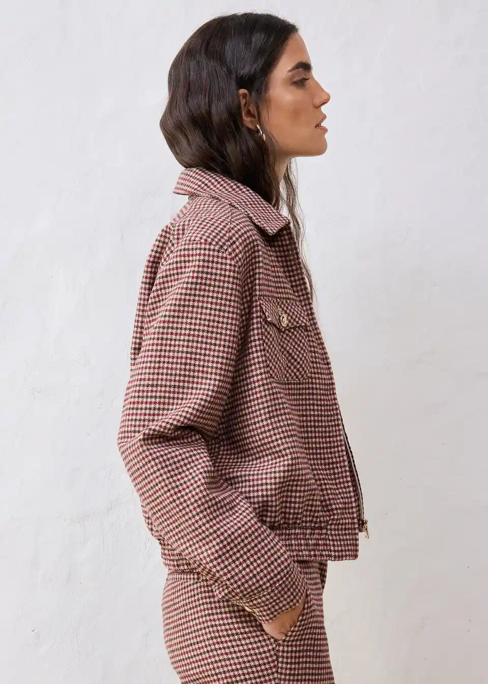Trendi Blouson s udjelom vune u elegantnom kariranom dizajnu