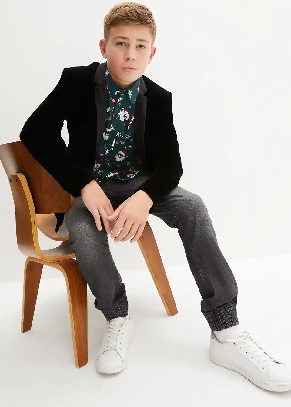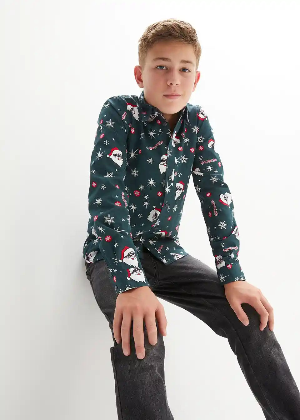 Košulja s dugim rukavima s božićnim motivom uskog kroja za dječake