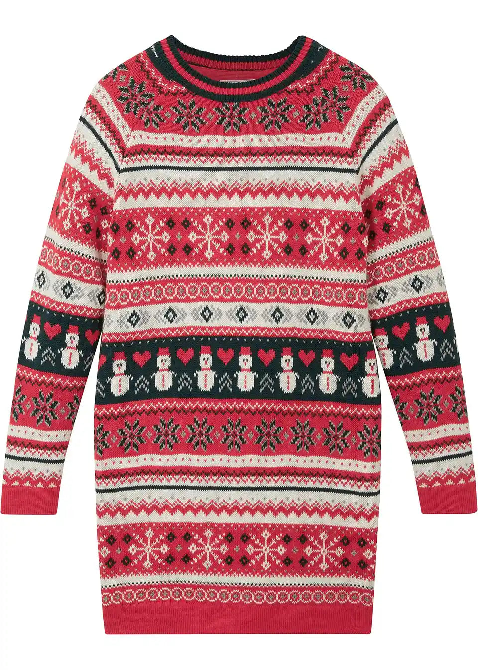 Ova pletena haljina sa zimskim motivima privlači poglede. Ekstra široki porub u rebrastom izgledu lijepo završava model za djevojčice. Također, krajevi rukava i okrugli izrez dolaze u ovom dizajnu. Mekani fini plet i ležeran kroj osiguravaju izvanrednu udobnost.