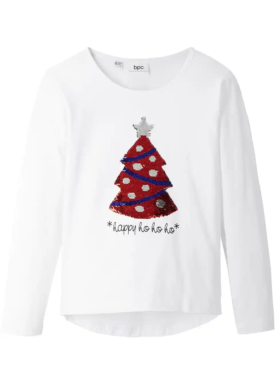Majica s dugim rukavima s obostranim šljokicama u božićnom dizajnu