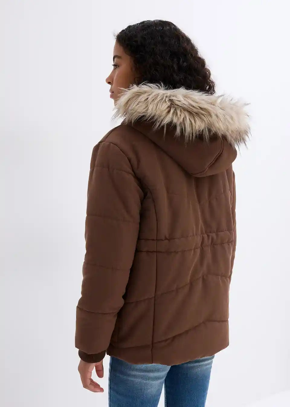 Materijal:gornji materijal: 100% poliester (reciklirani), podstava i vatirana podstava: 100% poliester, imitacija krzna: 52% akril, 38% modakril, 10% poliester