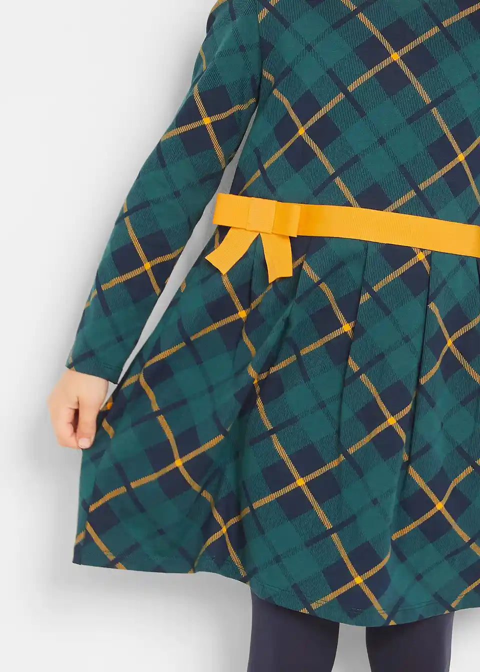 Čarobna haljina za djevojčice sa lijepim karo printom i slatkom mašnom u struku. Savršena uz hulahopke za hladne dane.