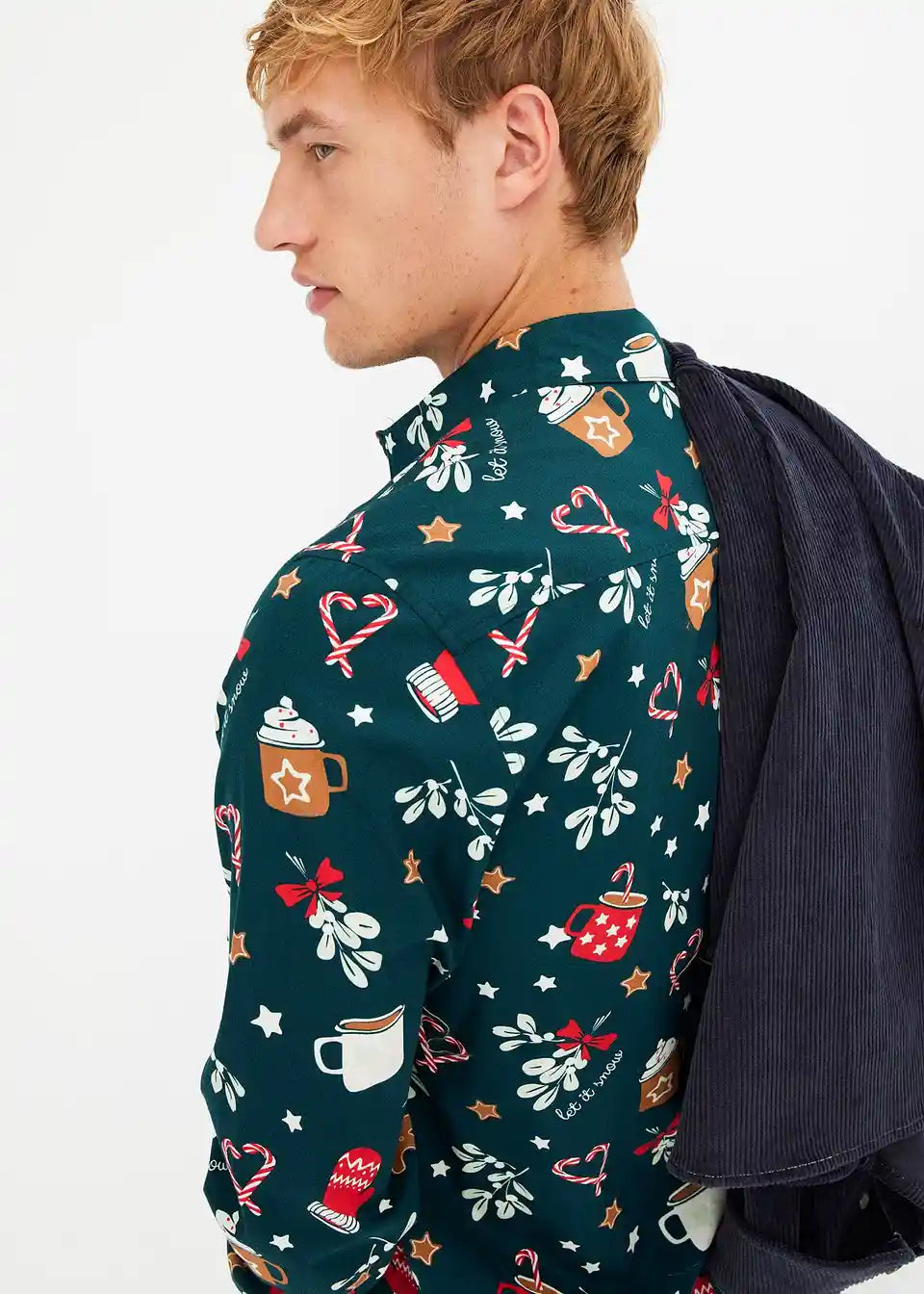 Košulja s dugim rukavima i božićnim motivom od pamuka