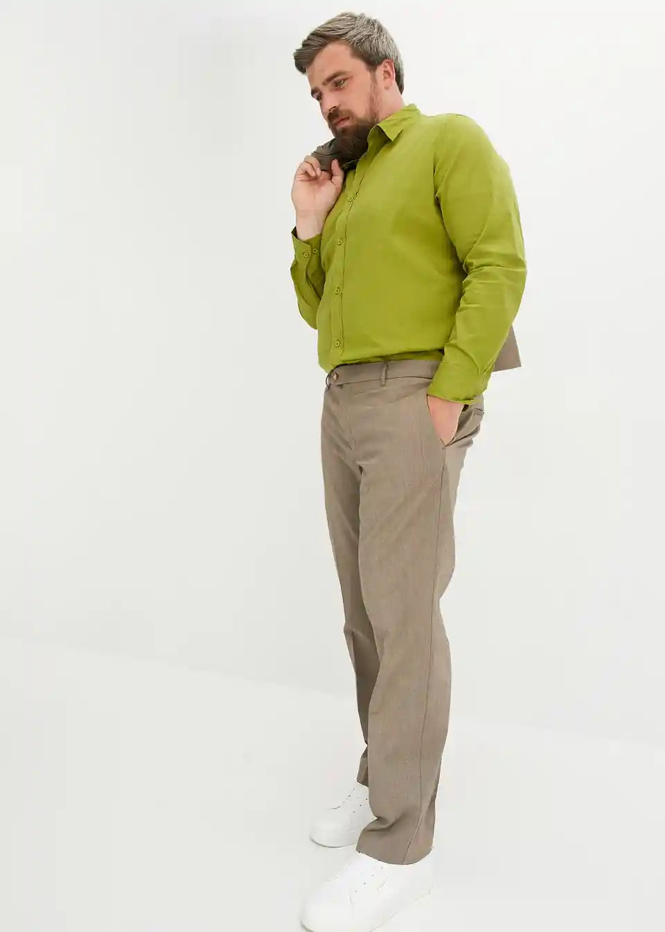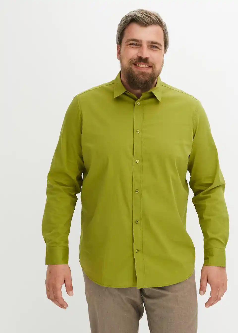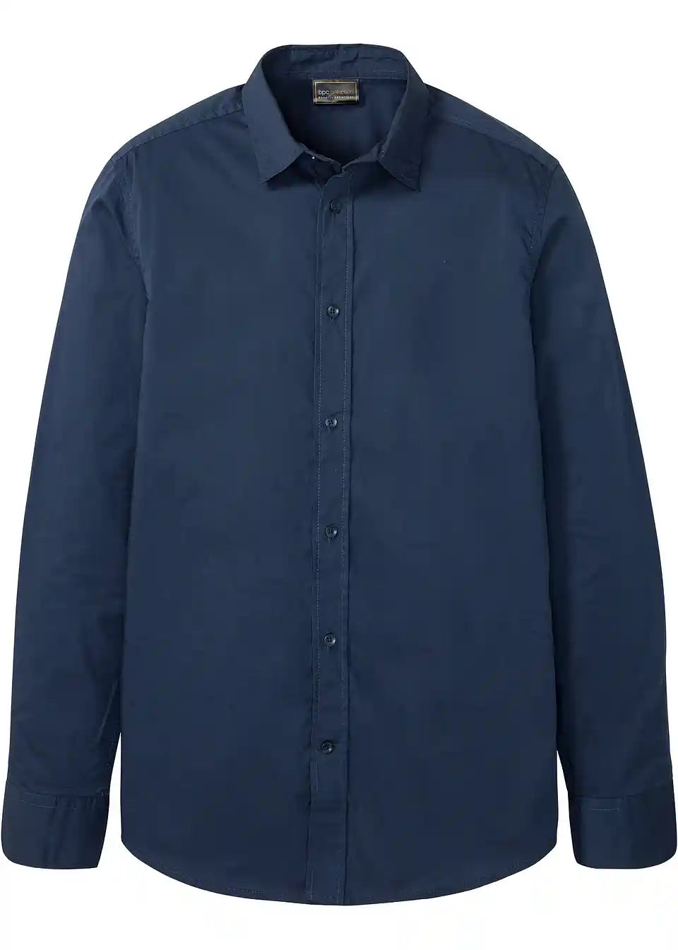 Muška košulja s dugim rukavima, Stretch, i blago zaobljenim porubom
