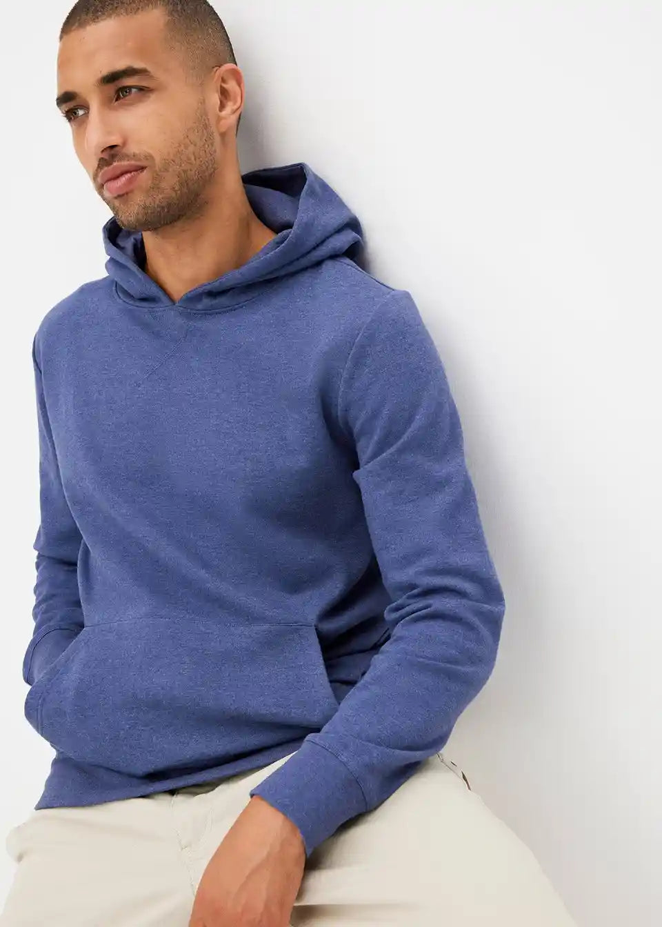 moderna Basic majica s kapuljačom s rebrastim porubom na rubu i rukavima