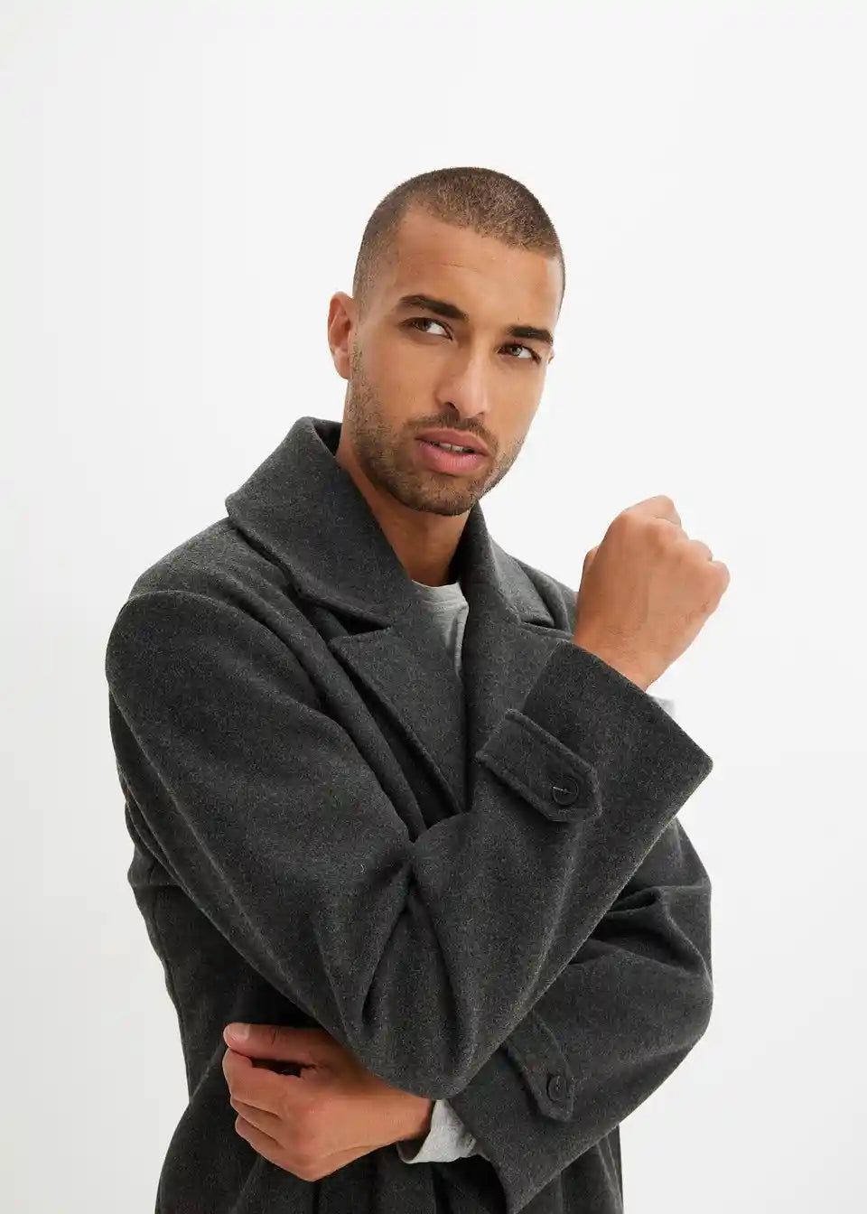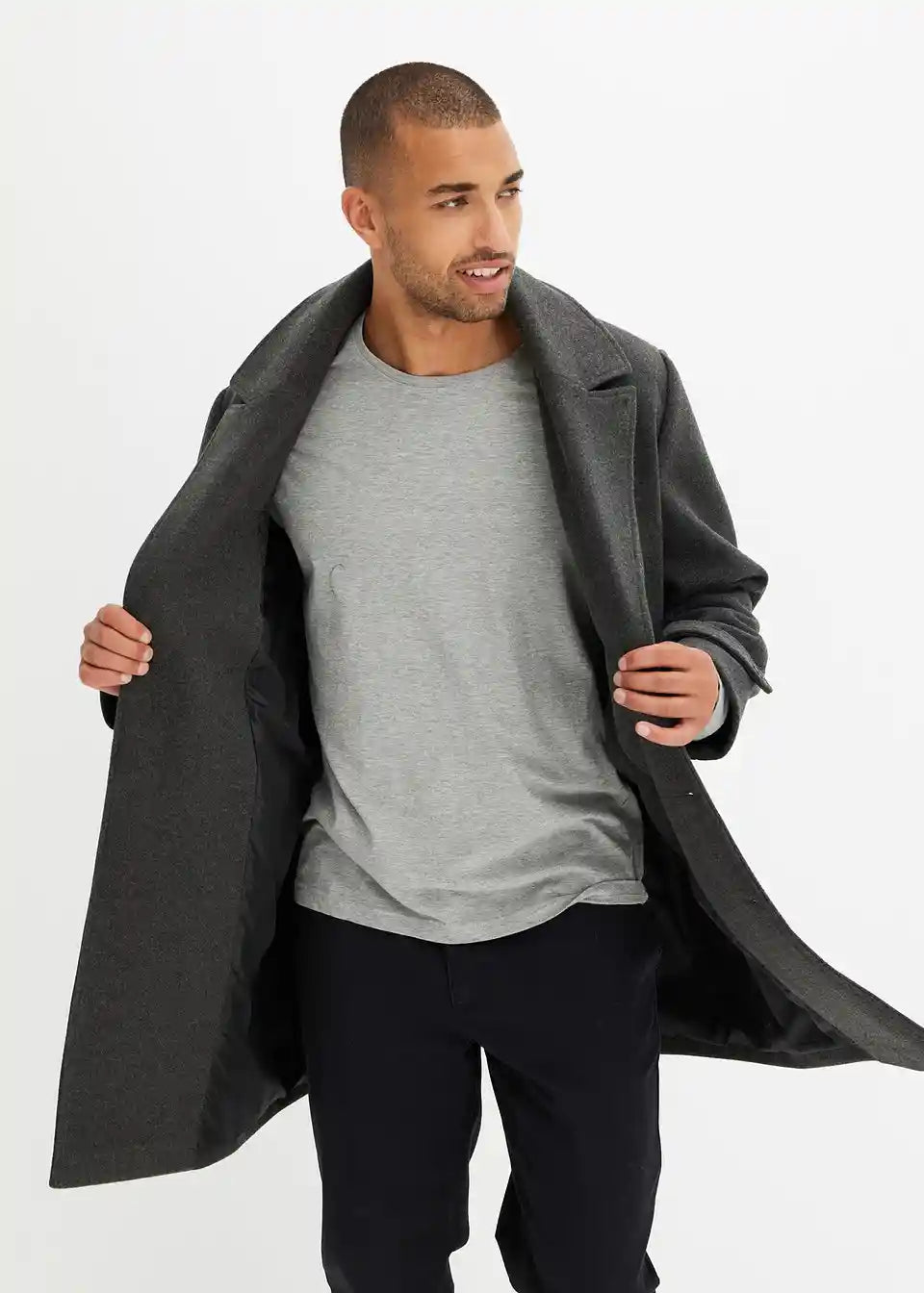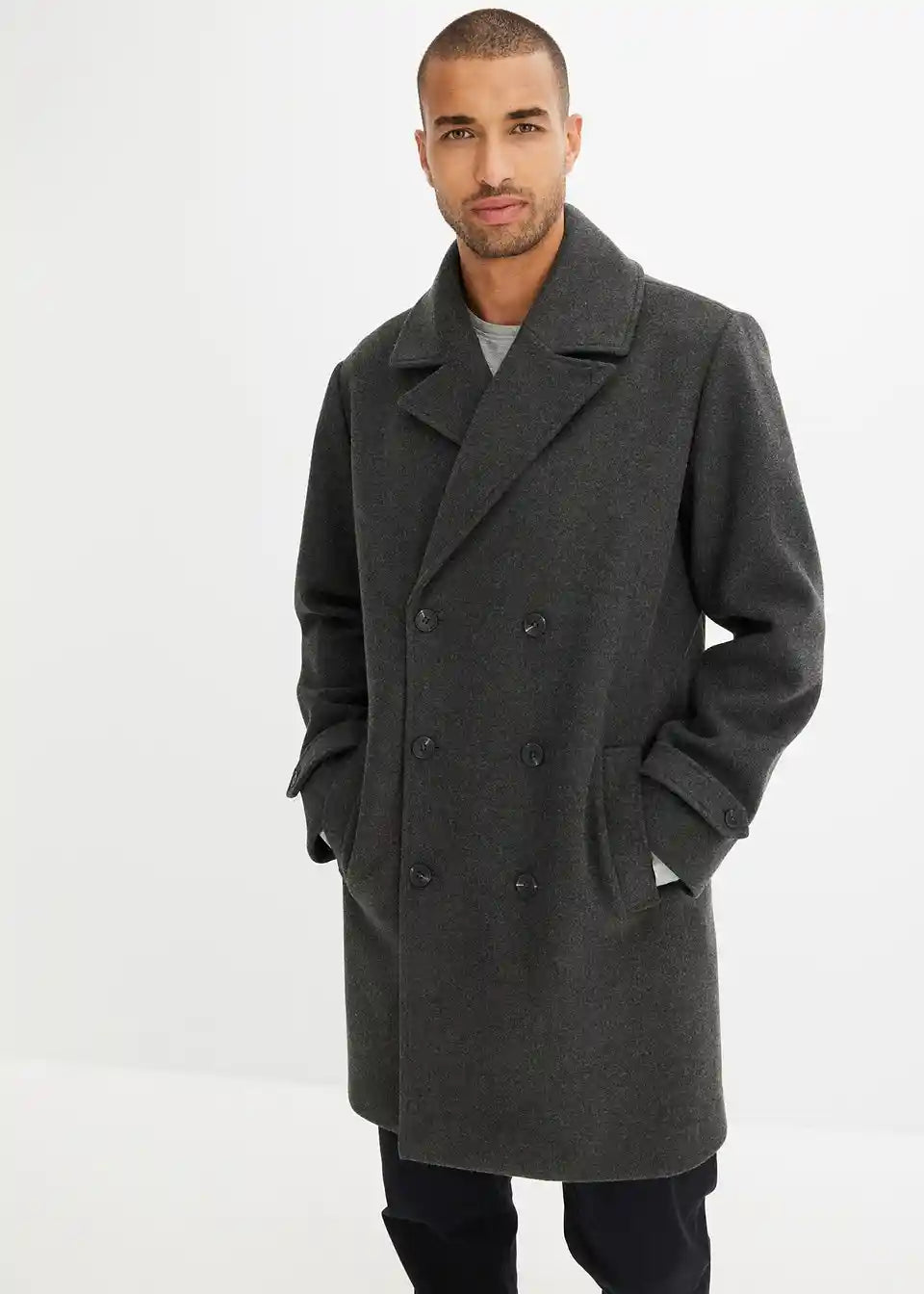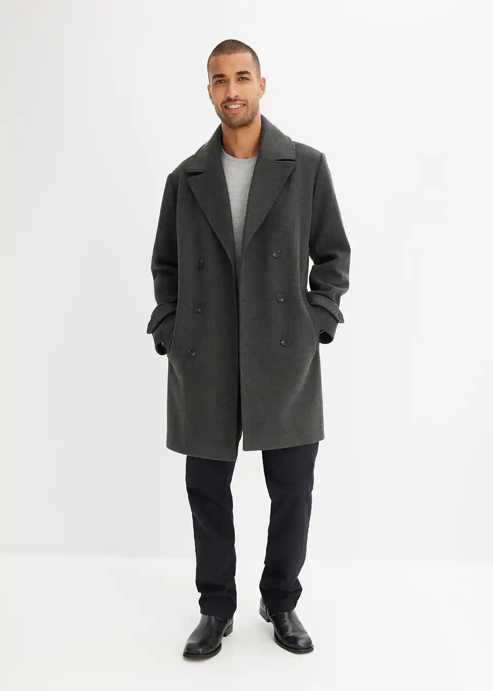 Der Blazer Mantel mit Wollanteil in anthrazit für Männer mit Format sieht optisch sehr gut aus und passt in der bestellten Größe genau. Der Preis im Ausverkauf ist unschlagbar und der Mantel ist toll zu kombinierbar mit Jeans.
