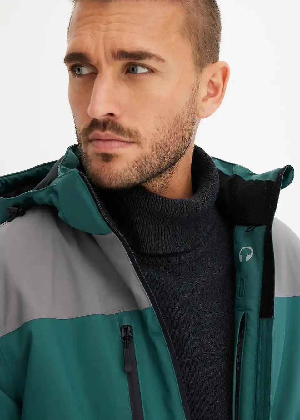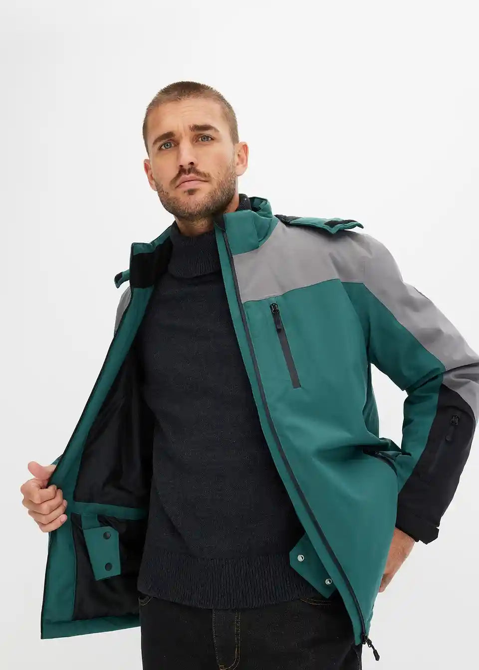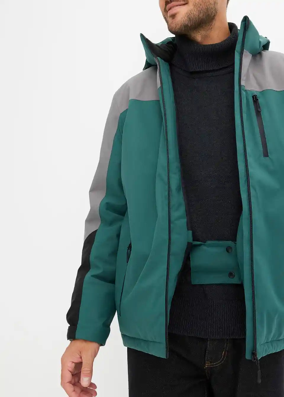moderna skijaška jakna s kapuljačom i sljedećim funkcijama: vodootporna, vjetronepropusna, vodootporni šavovi i podstavljena