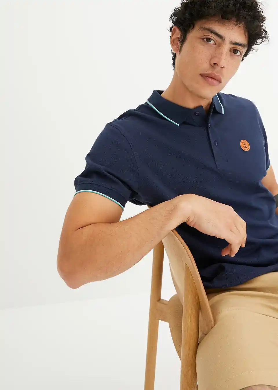 Morska polo majica s kožnim imitacijskim bedžom na prsima