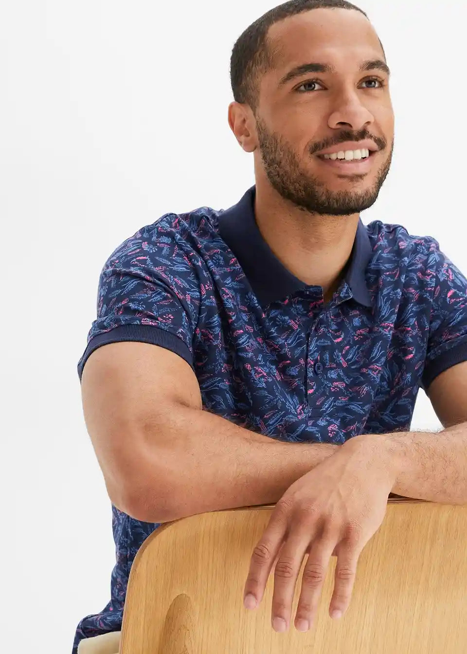 Poloshirt hat ein schönes Muster u. die Farben blau/flamingopink stehen meinem Mann sehr gut. Es ist nicht zu dick für ein Sommer Poloshirt. Preis ist okay. Nach dem Waschgang in Form geblieben. Bügelfrei.