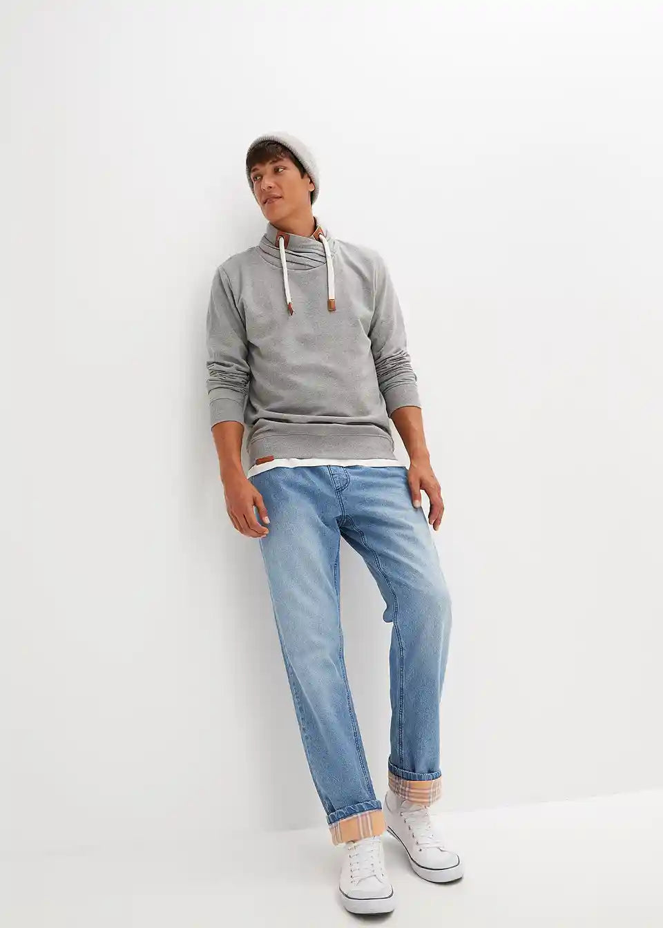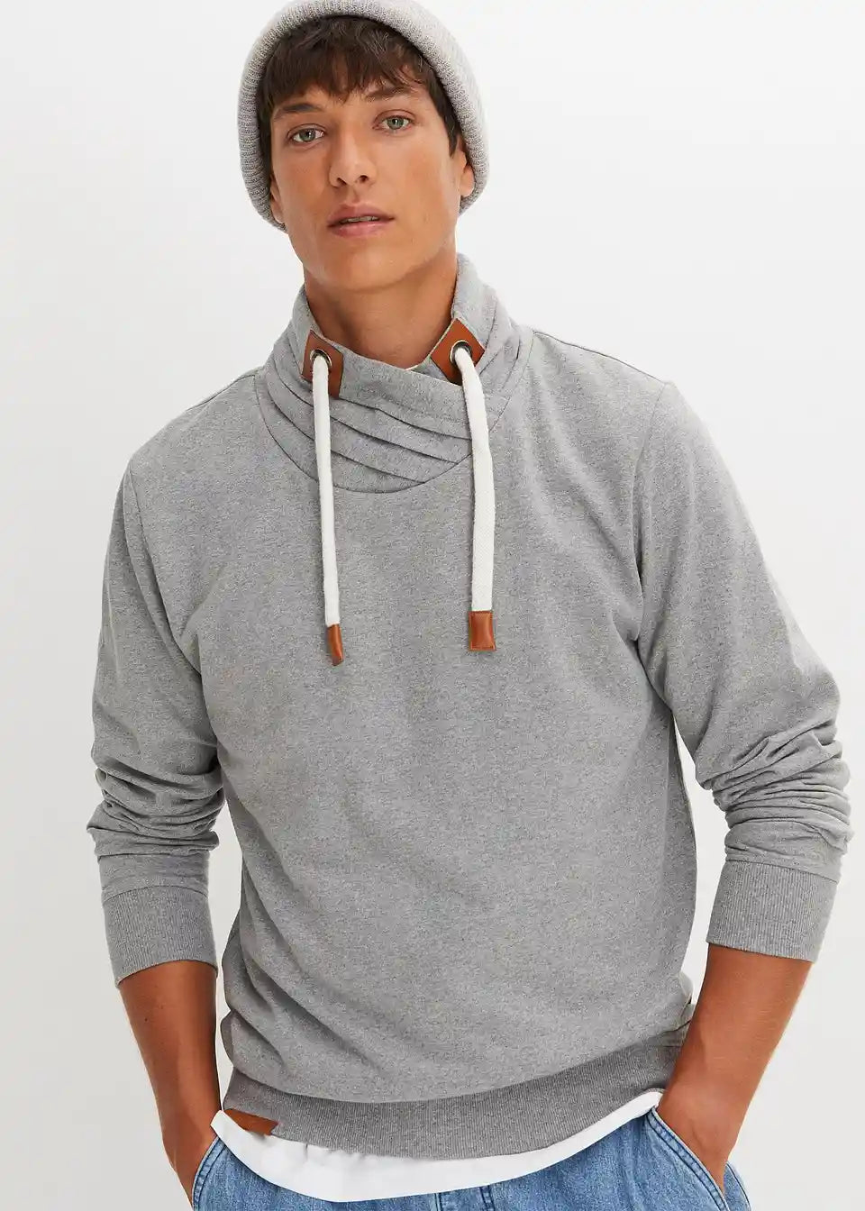 Robustan Sweatshirt s ovratnikom na preklop i modernim detaljima