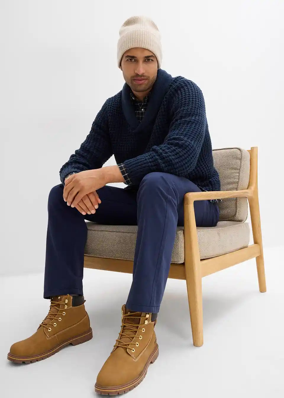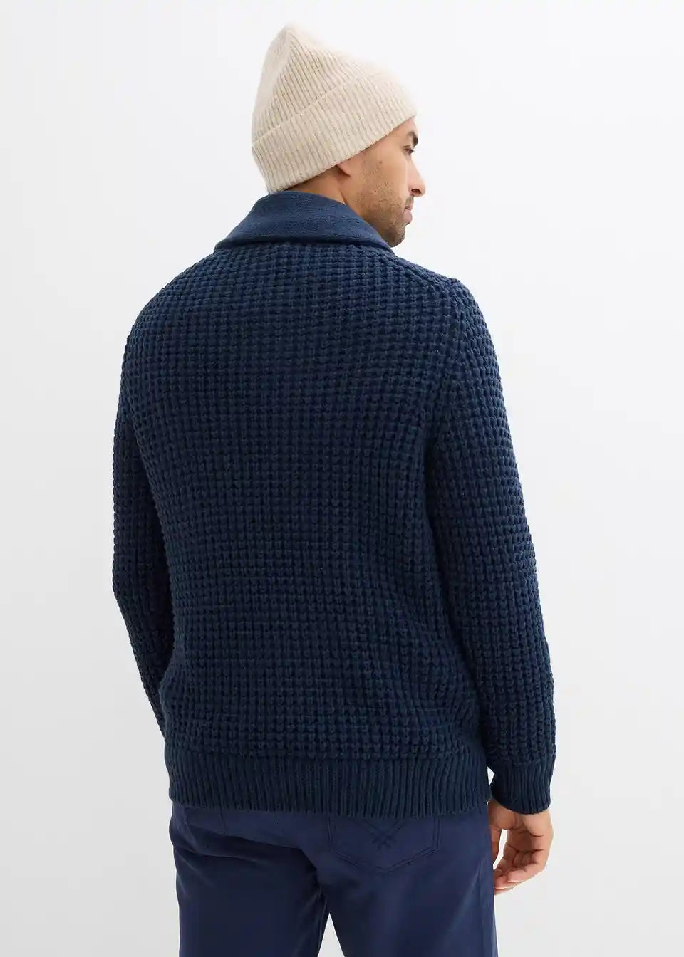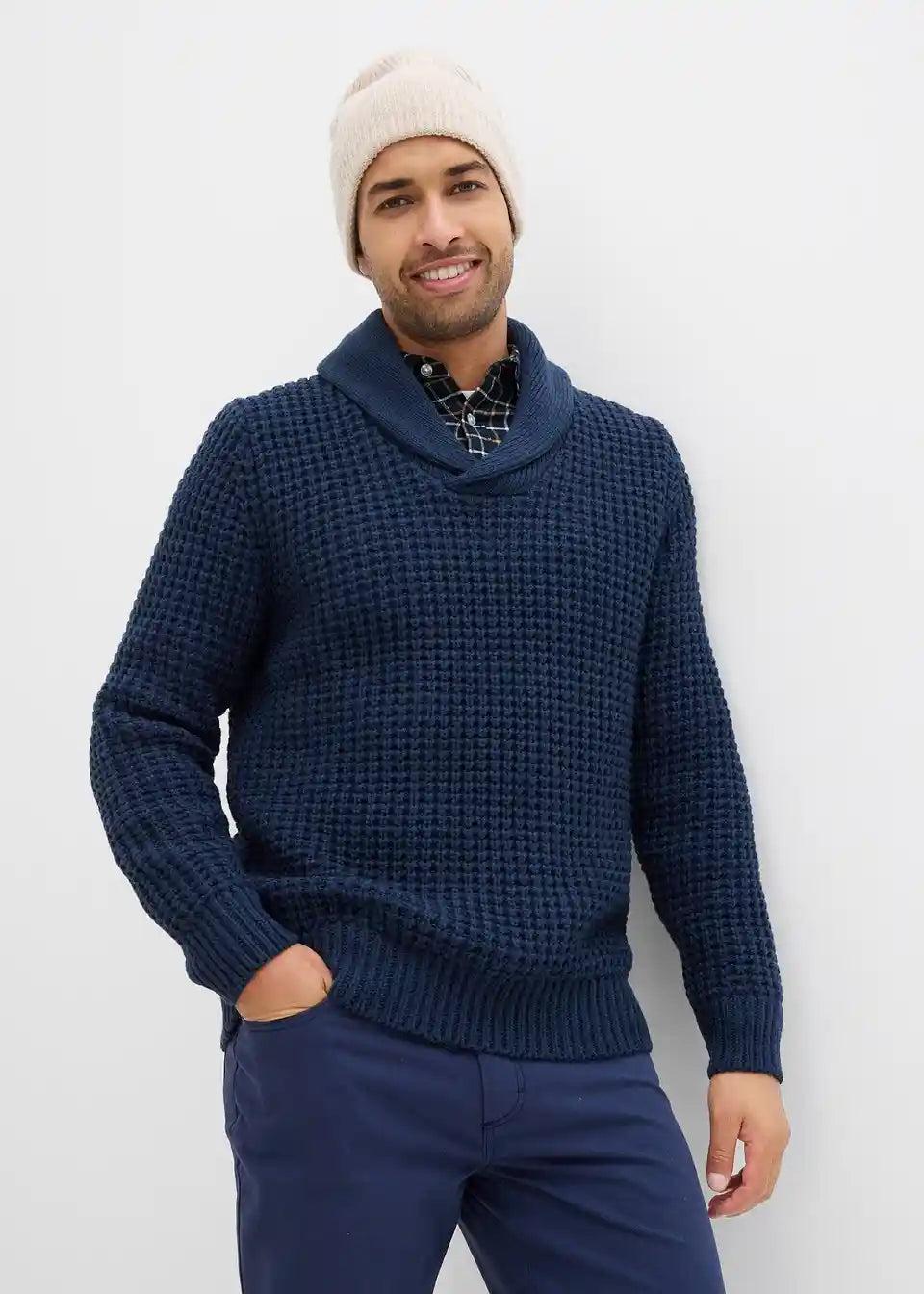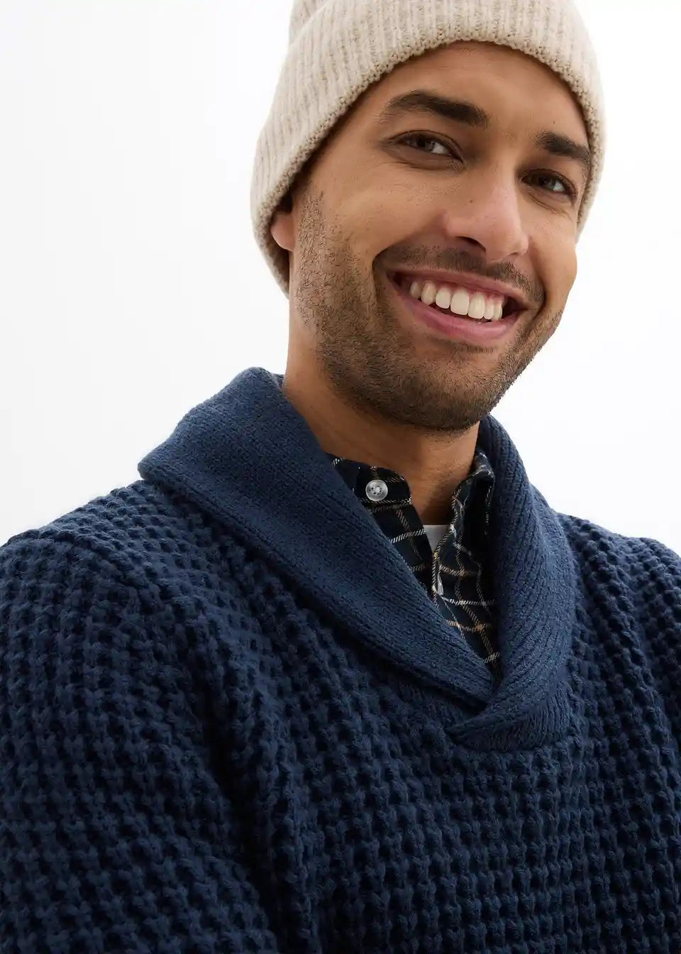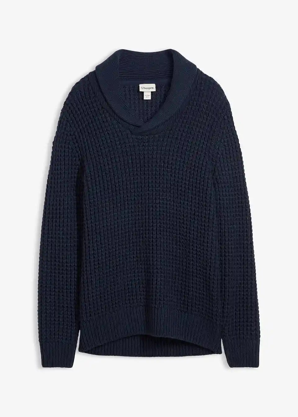 Grubo pleteni pulover sa šal kragnom sa strukturom vafla