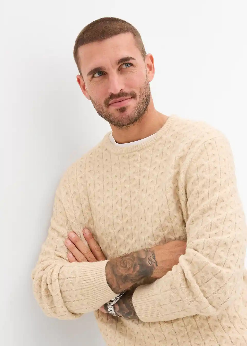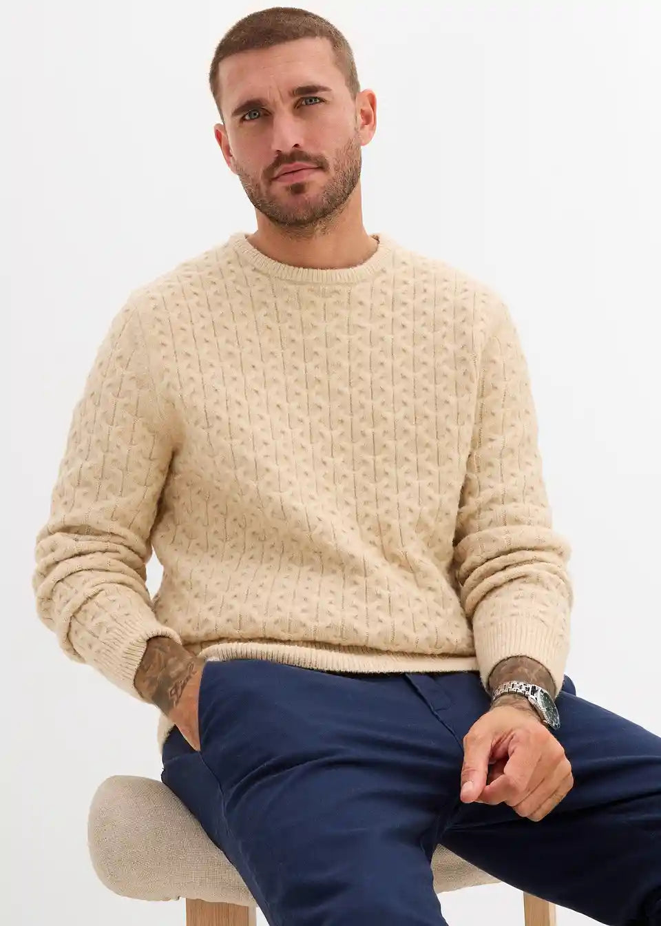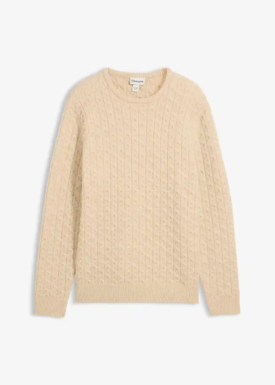Pleteni pulover s okruglim izrezom i strukturiranim uzorkom