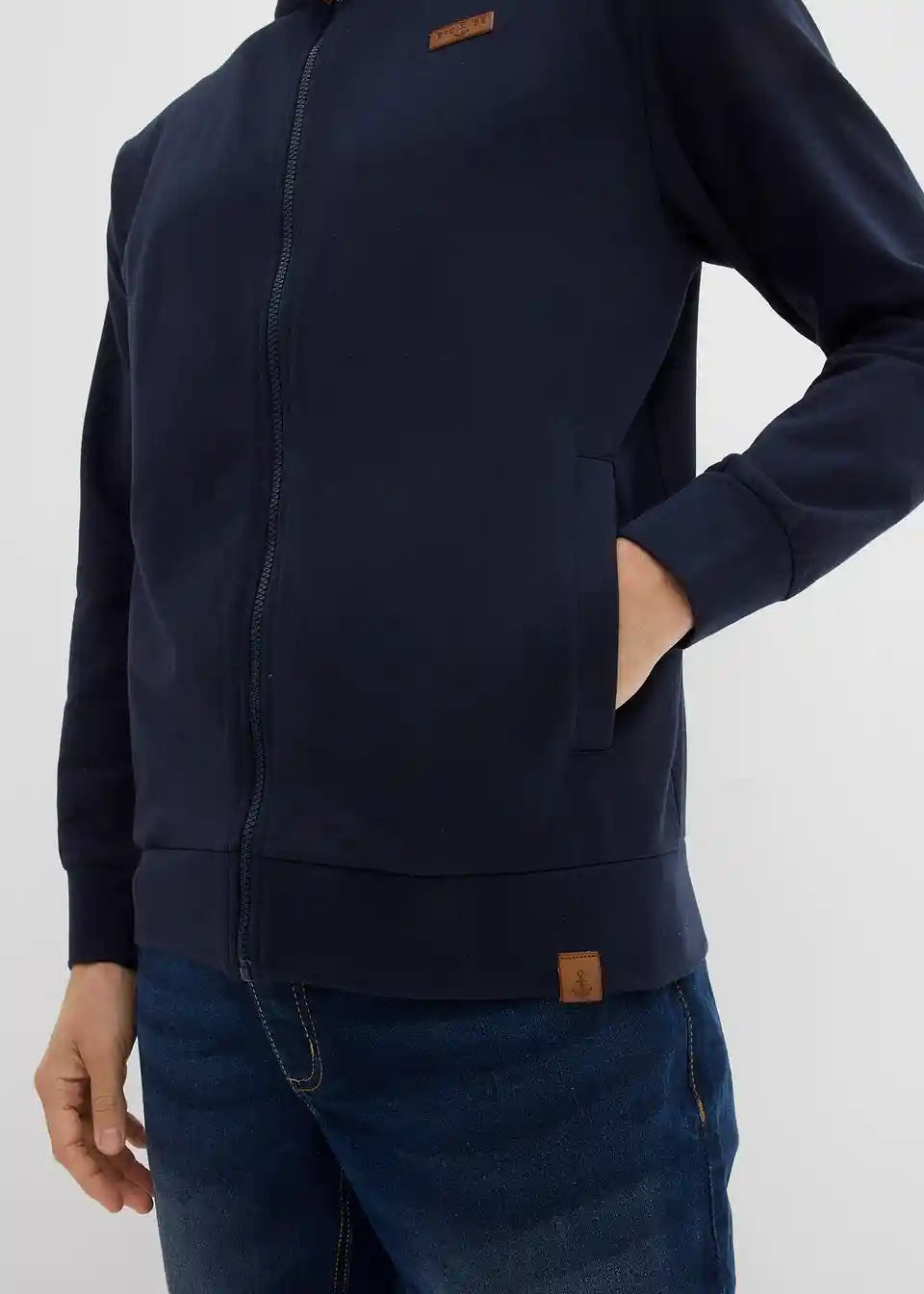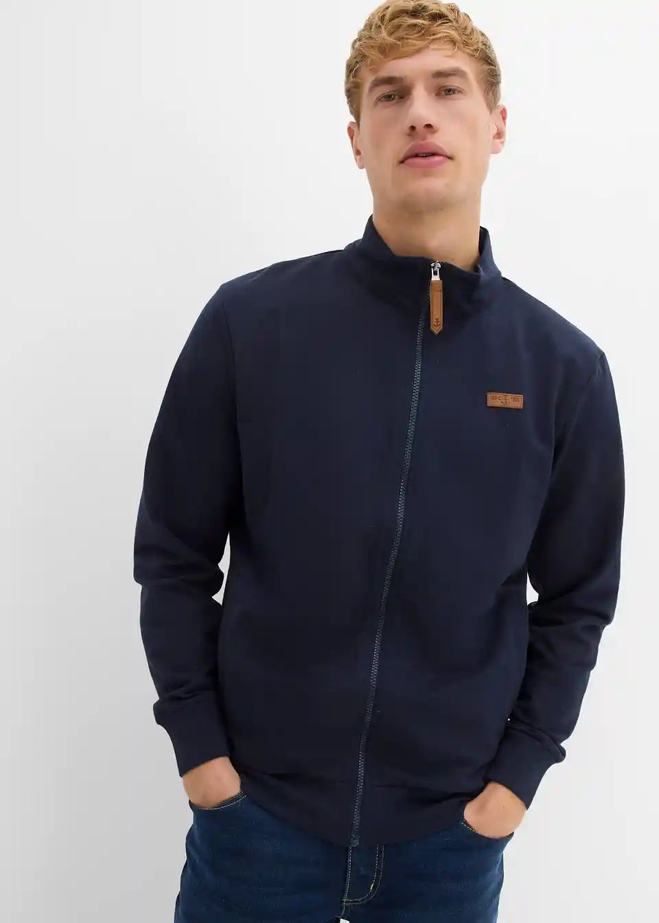 Sweat jakna s lijepim detaljima od imitacije kože i uspravnim ovratnikom