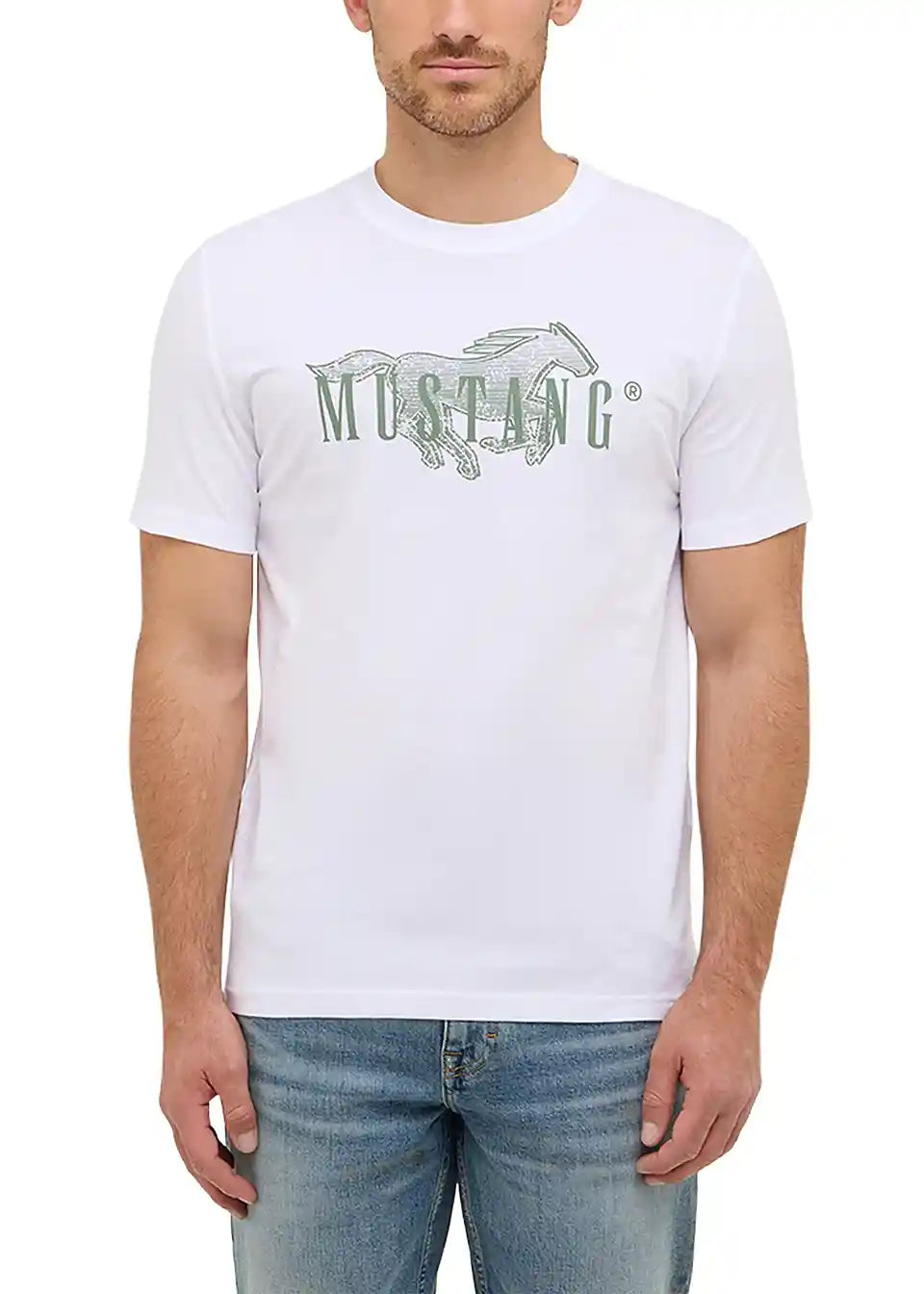 Ležerno krojena majica s kratkim rukavima marke Mustang s okruglim izrezom i natpisom brenda