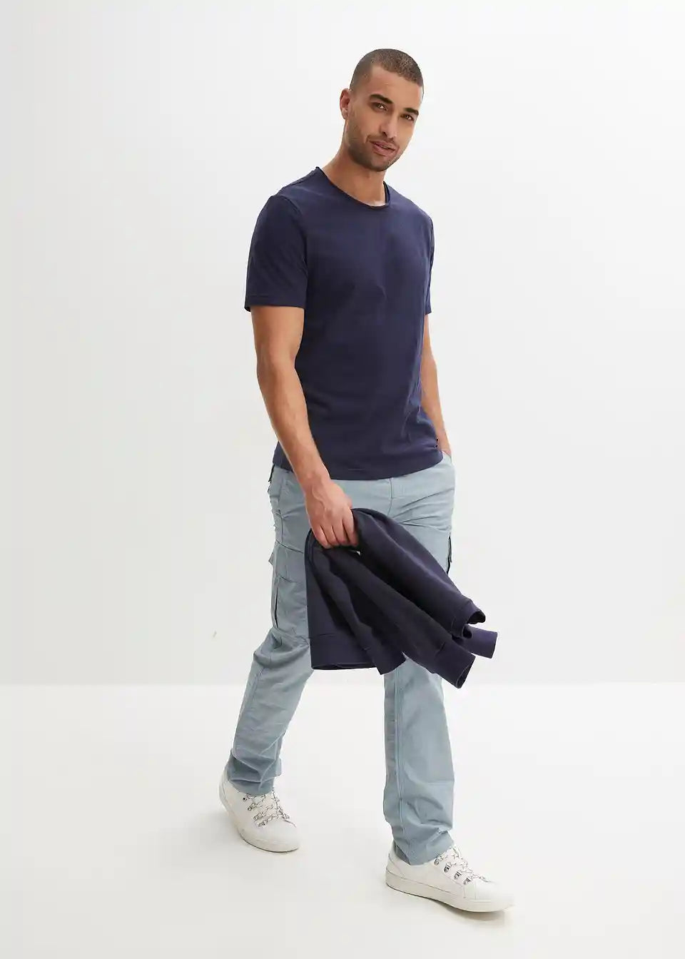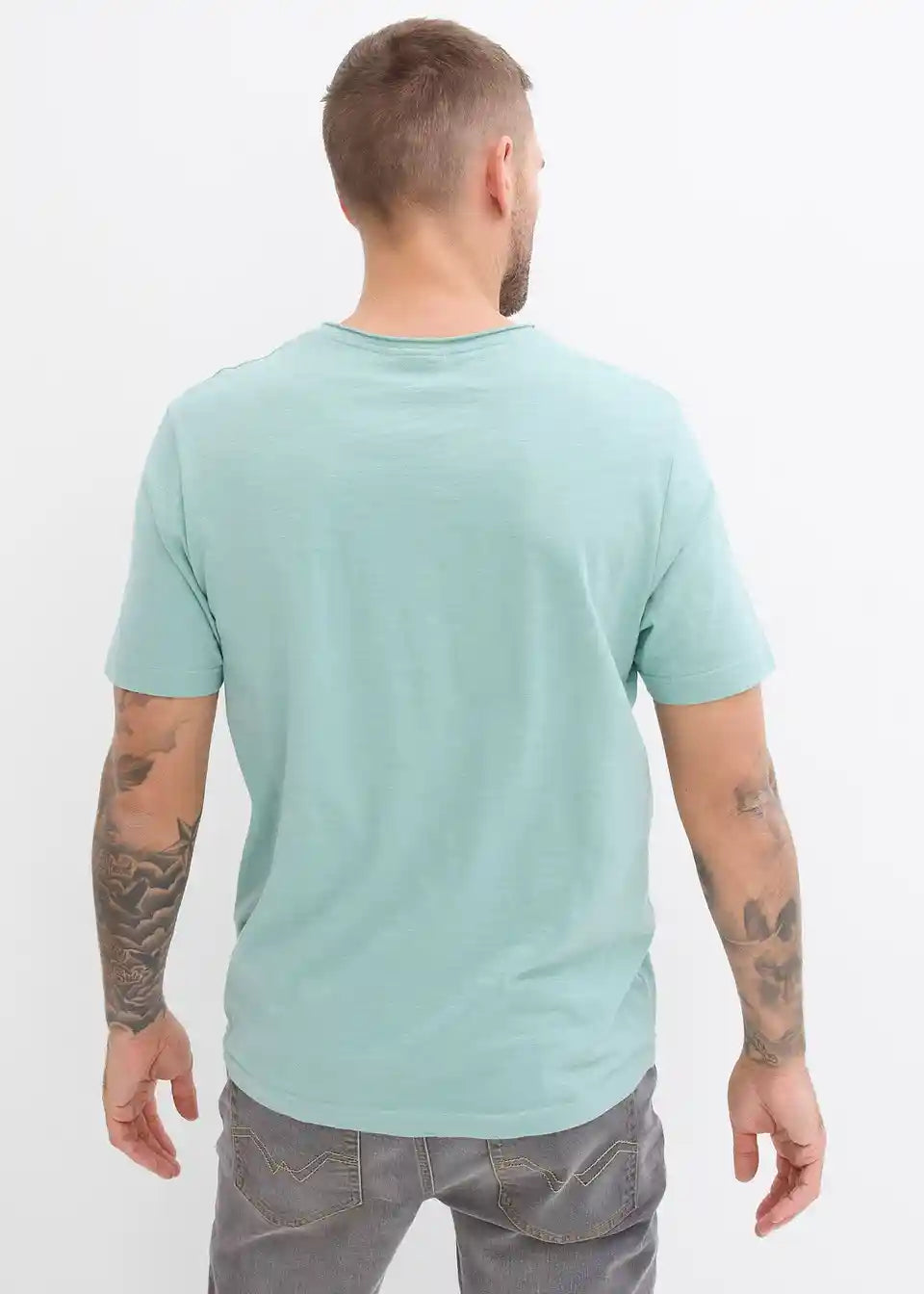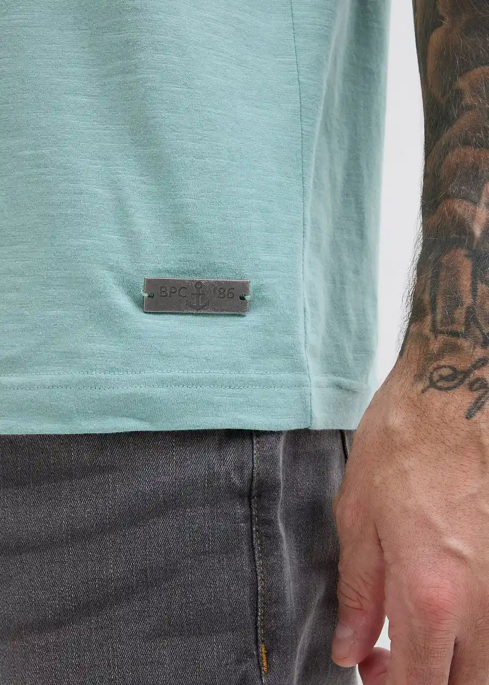 Trendy T-Shirt s otvorenim rubovima na izrezu i malom metalnom etiketom na bočnom šavu