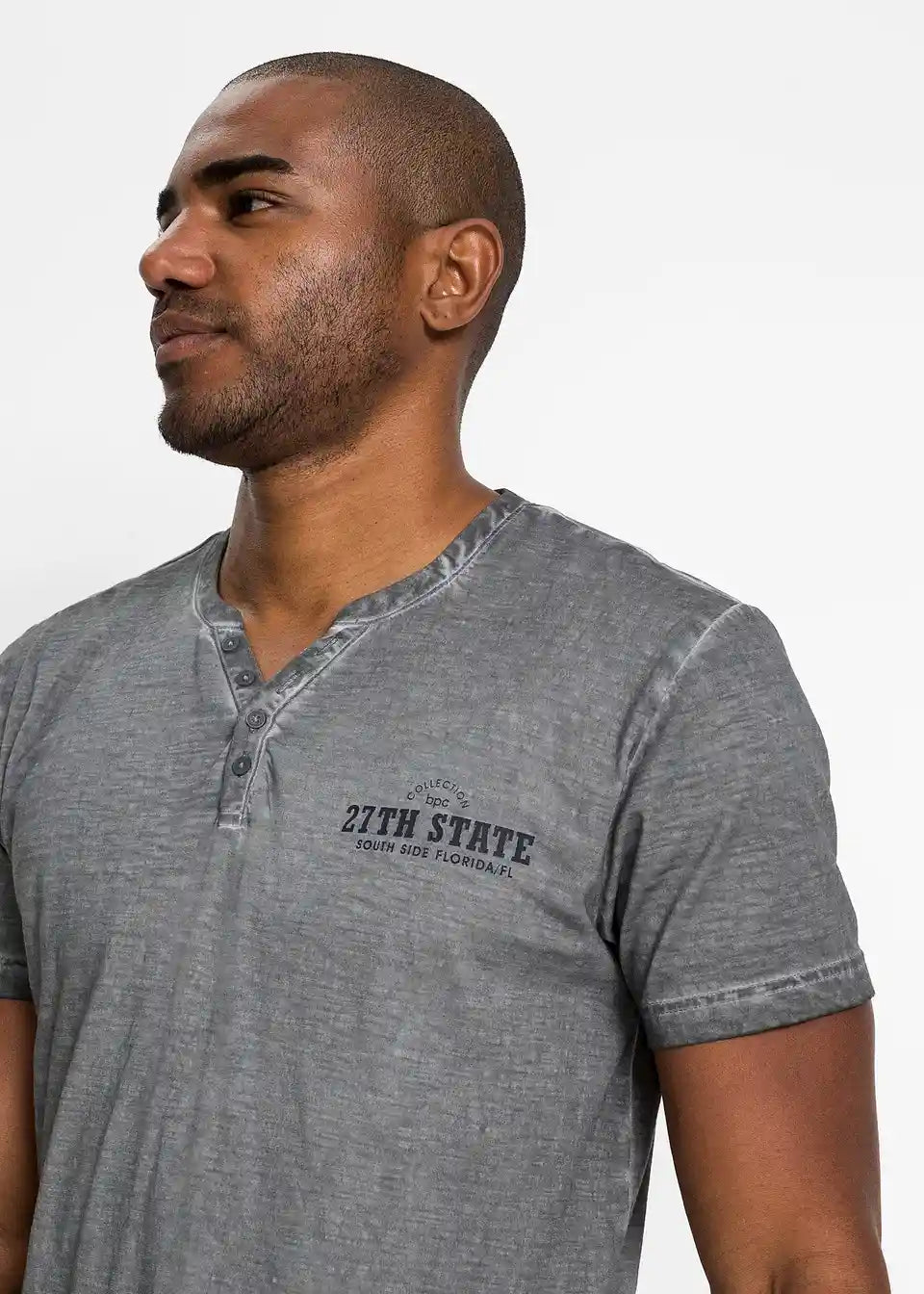 Majica s okruglim izrezom s gumbima ispranog izgleda s kratkim rukavima