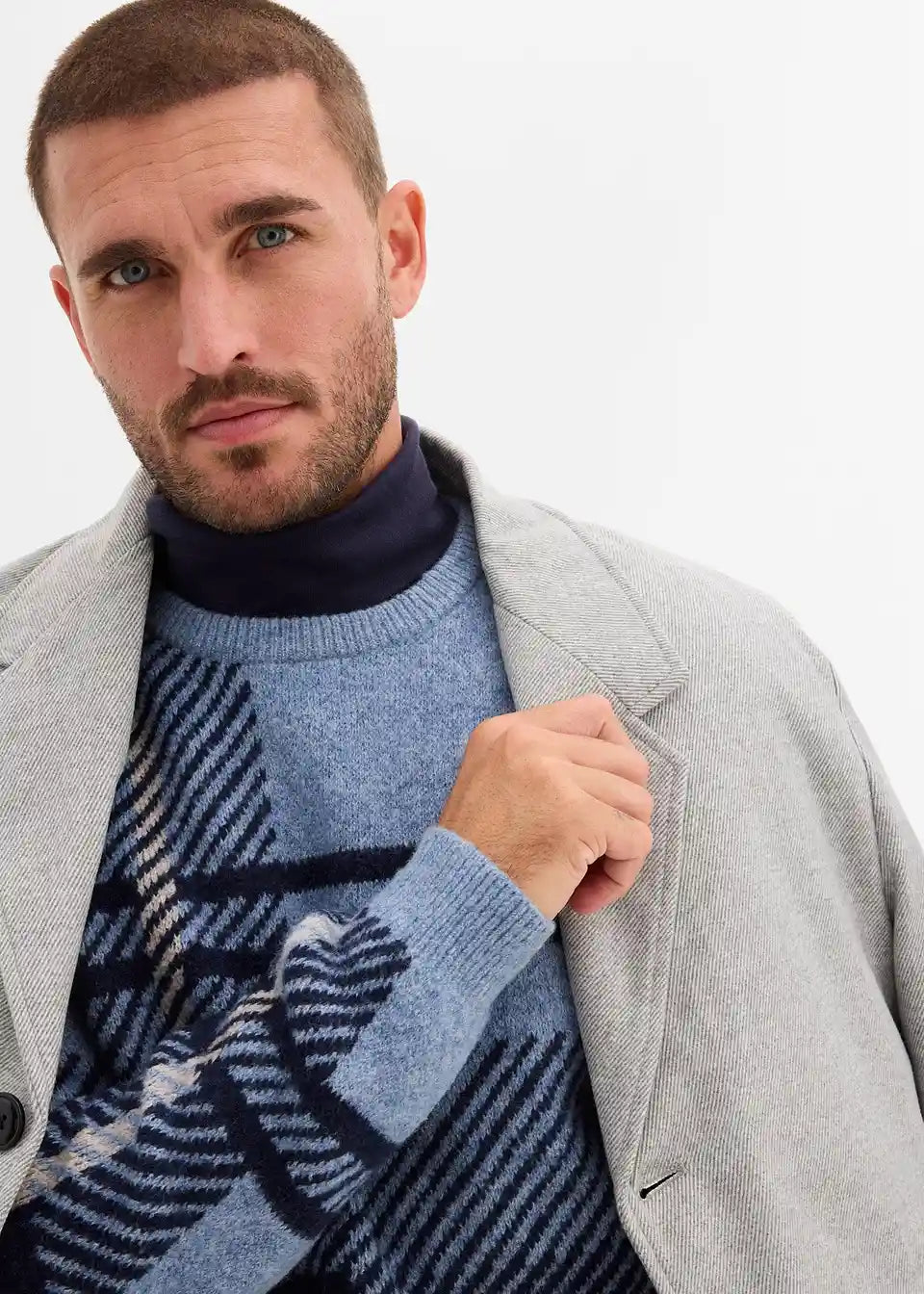 Moderan pleteni pulover Regular Fit kroja s okruglim izrezom i modernim rebrastim rubovima