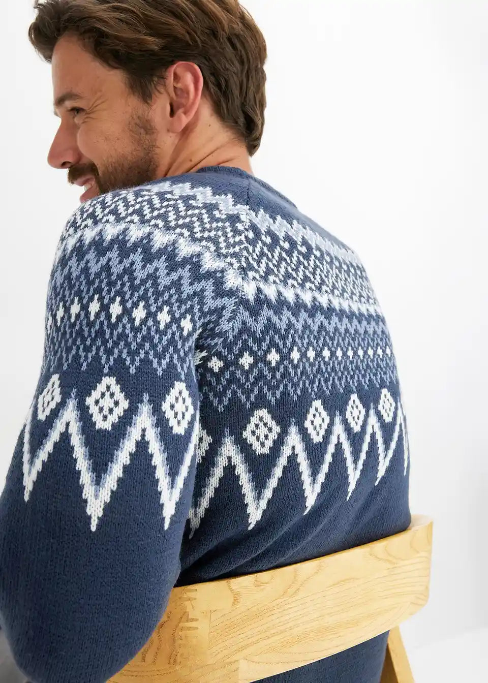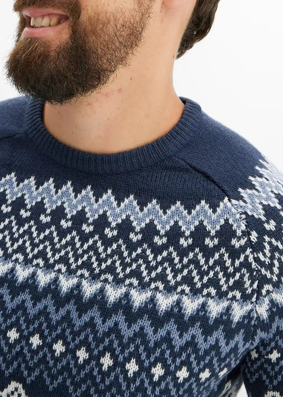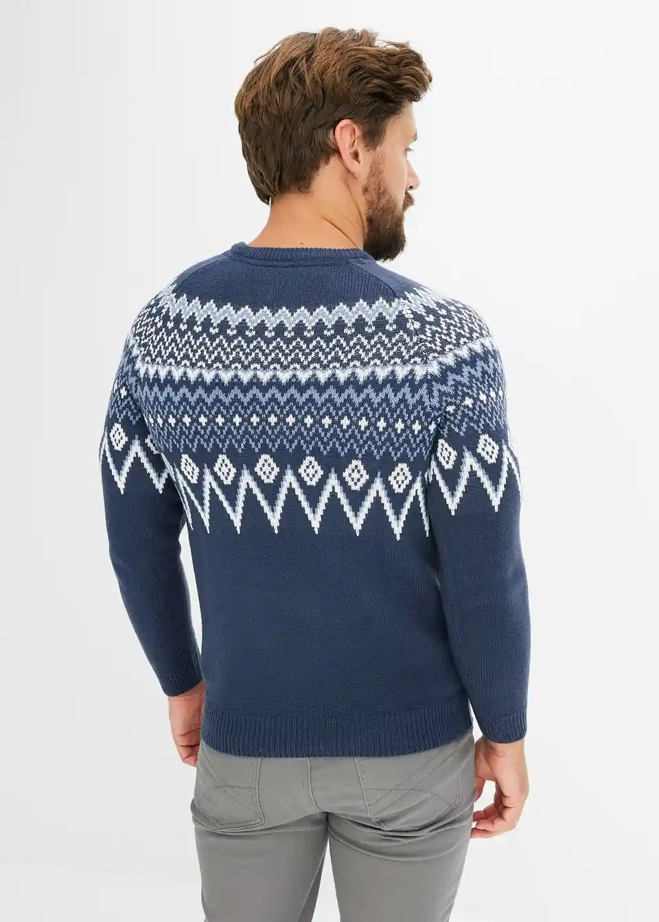 Prekrasan norveški pulover s okruglim izrezom i rebrastim obrubima, perivo u perilici