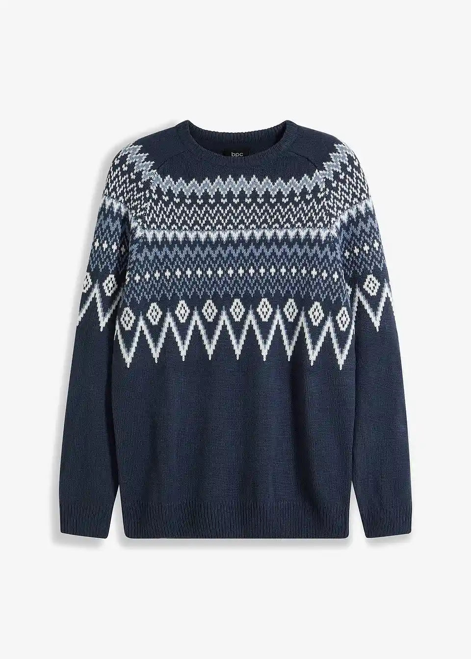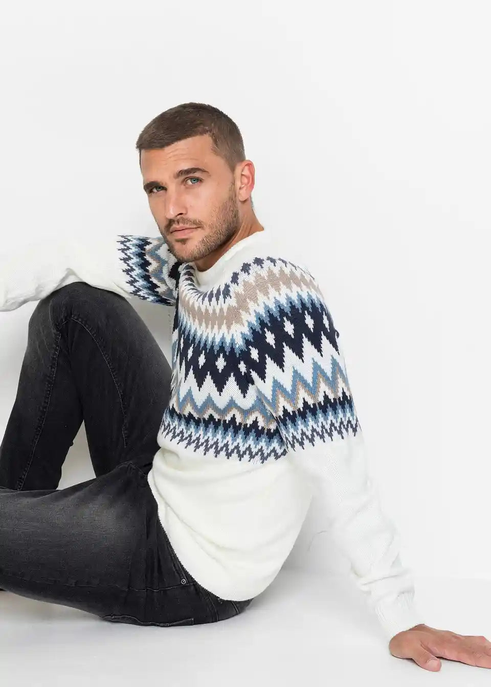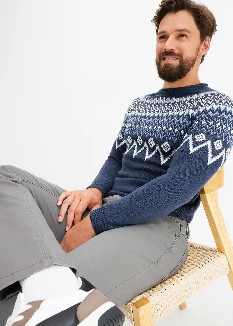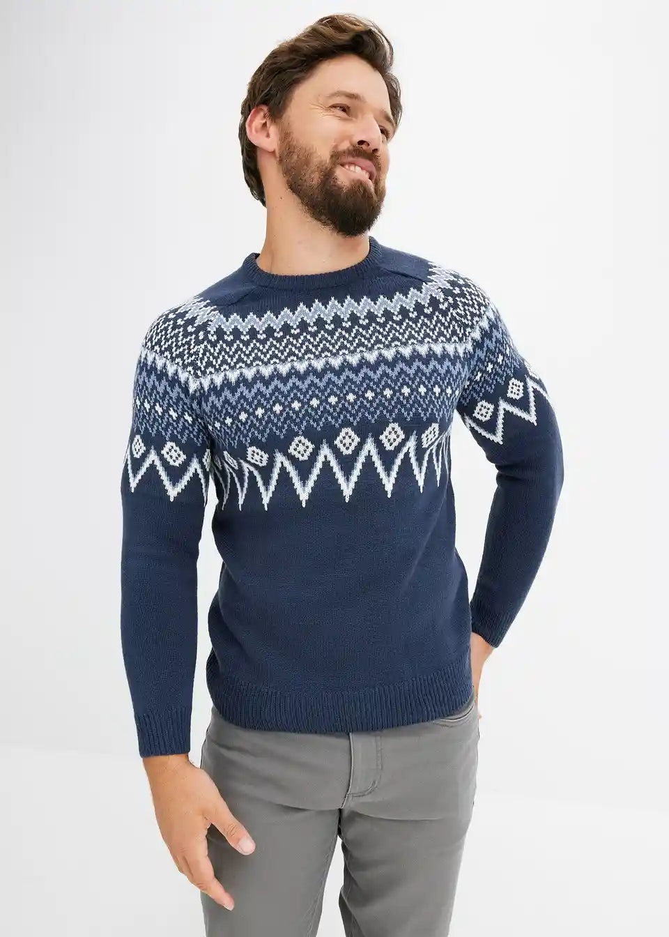 Prekrasan norveški pulover s okruglim izrezom i rebrastim obrubima, perivo u perilici