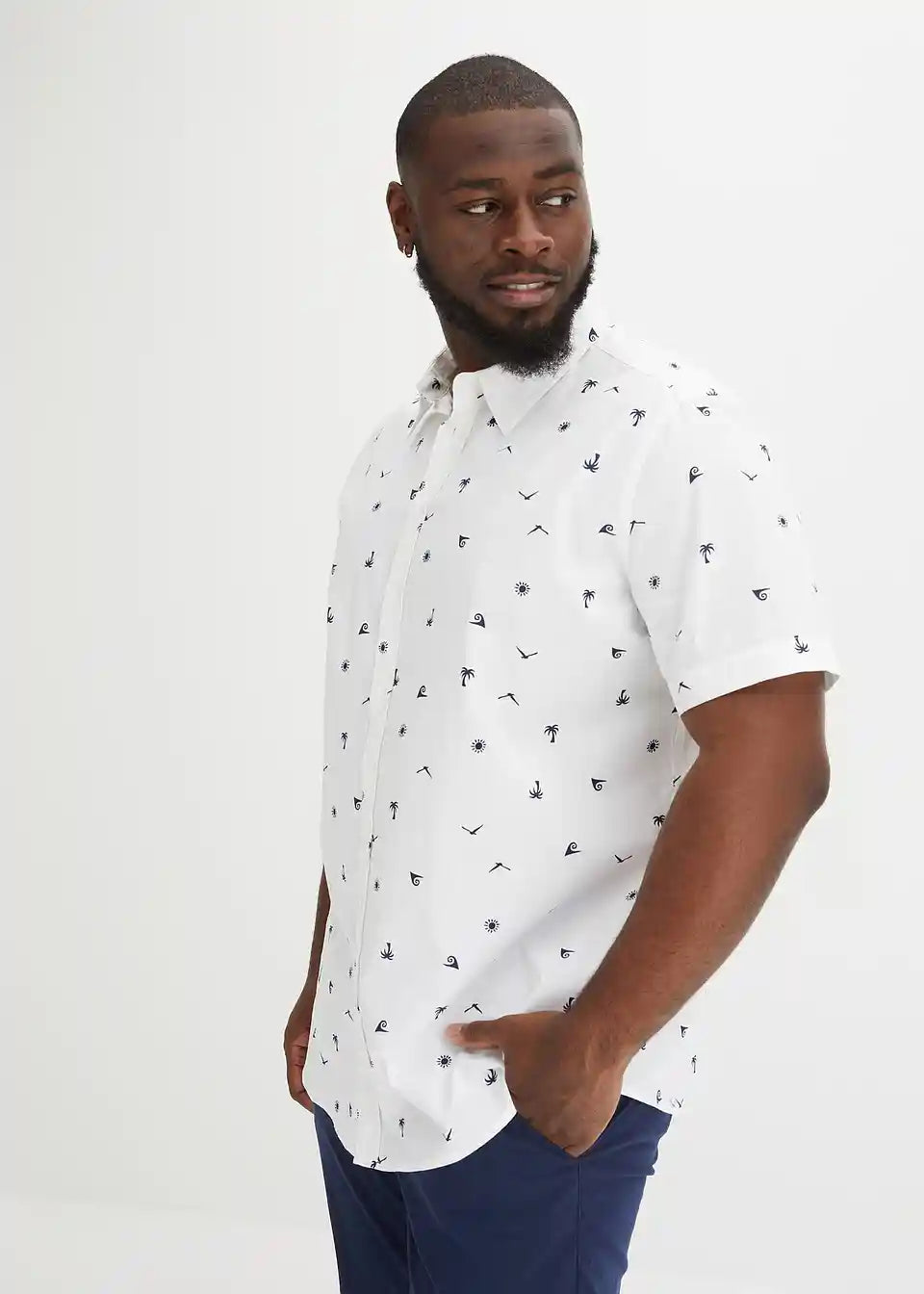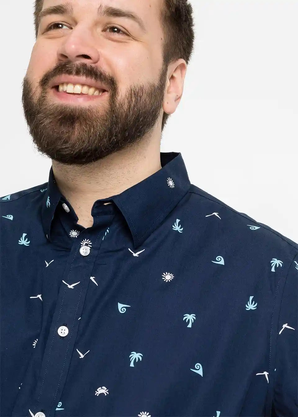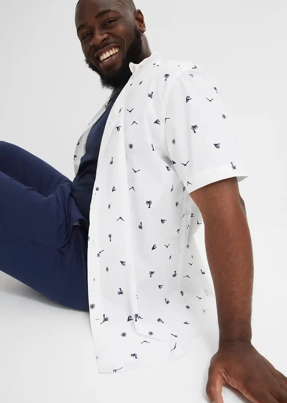 Košulja s Kratkim Rukavima s Udobnim Krojom s ljetnim allover uzorkom, perivo u perilici rublja.