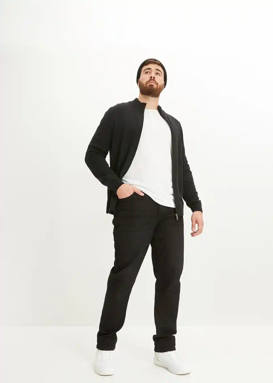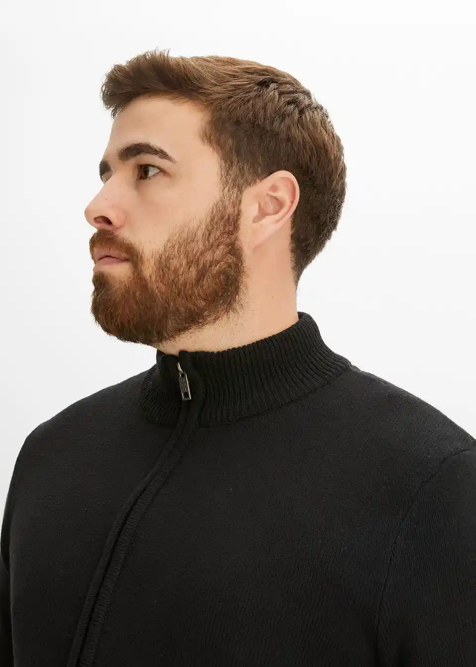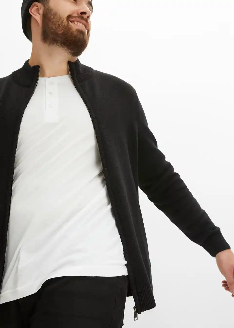 Lijepa osnovna pletena jakna s rebrastim završetkom i malom etiketom na rubu, perivo u perilici rublja