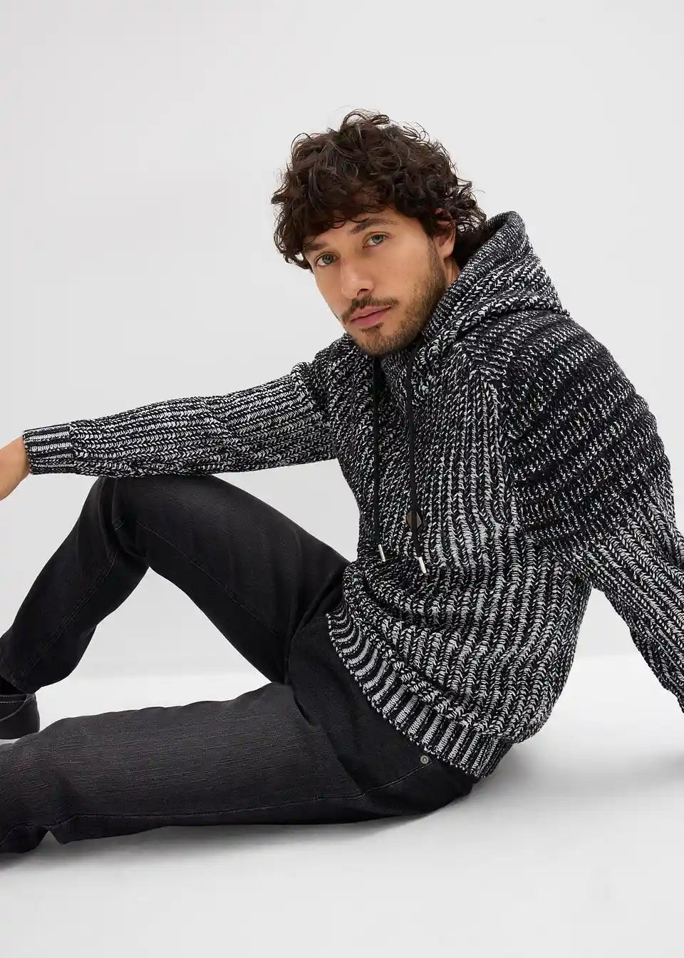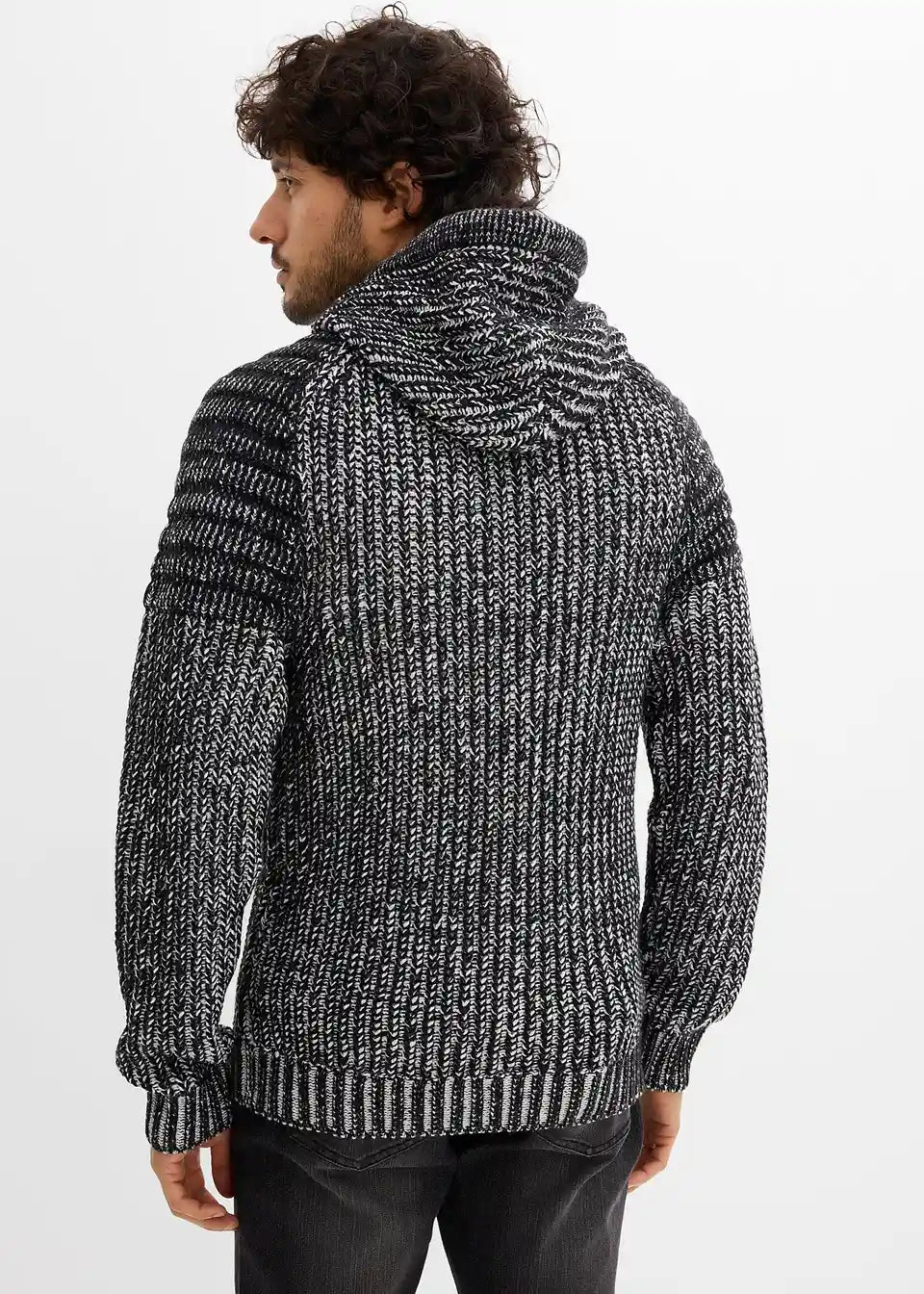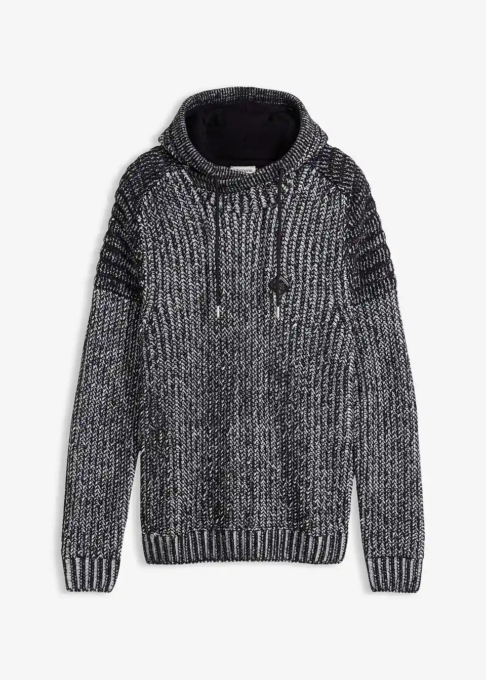 Grubo pleteni pulover s kapuljačom i motorističkim detaljima
