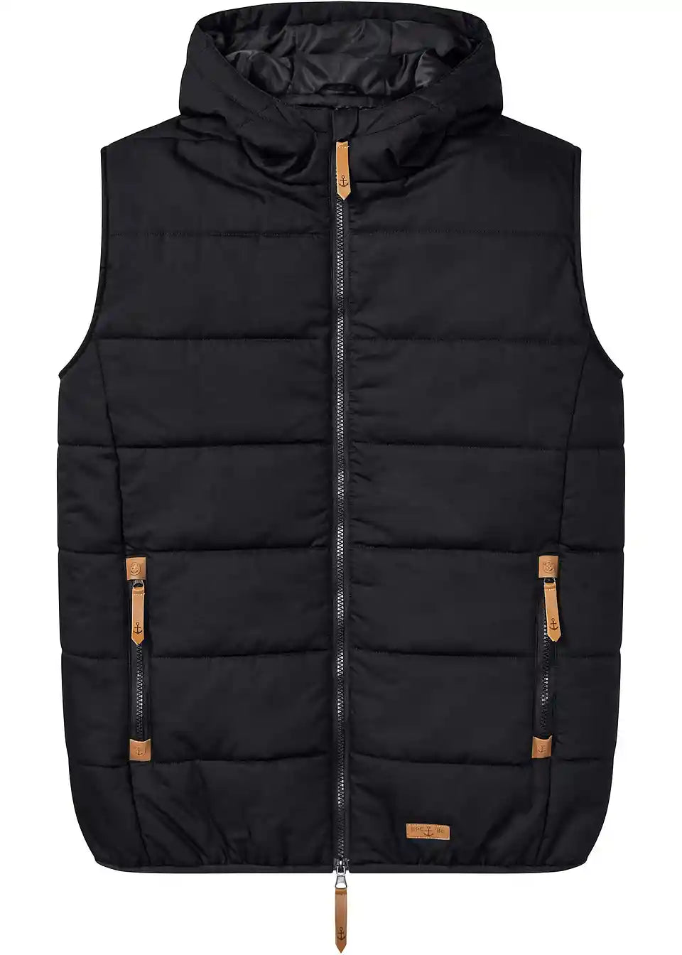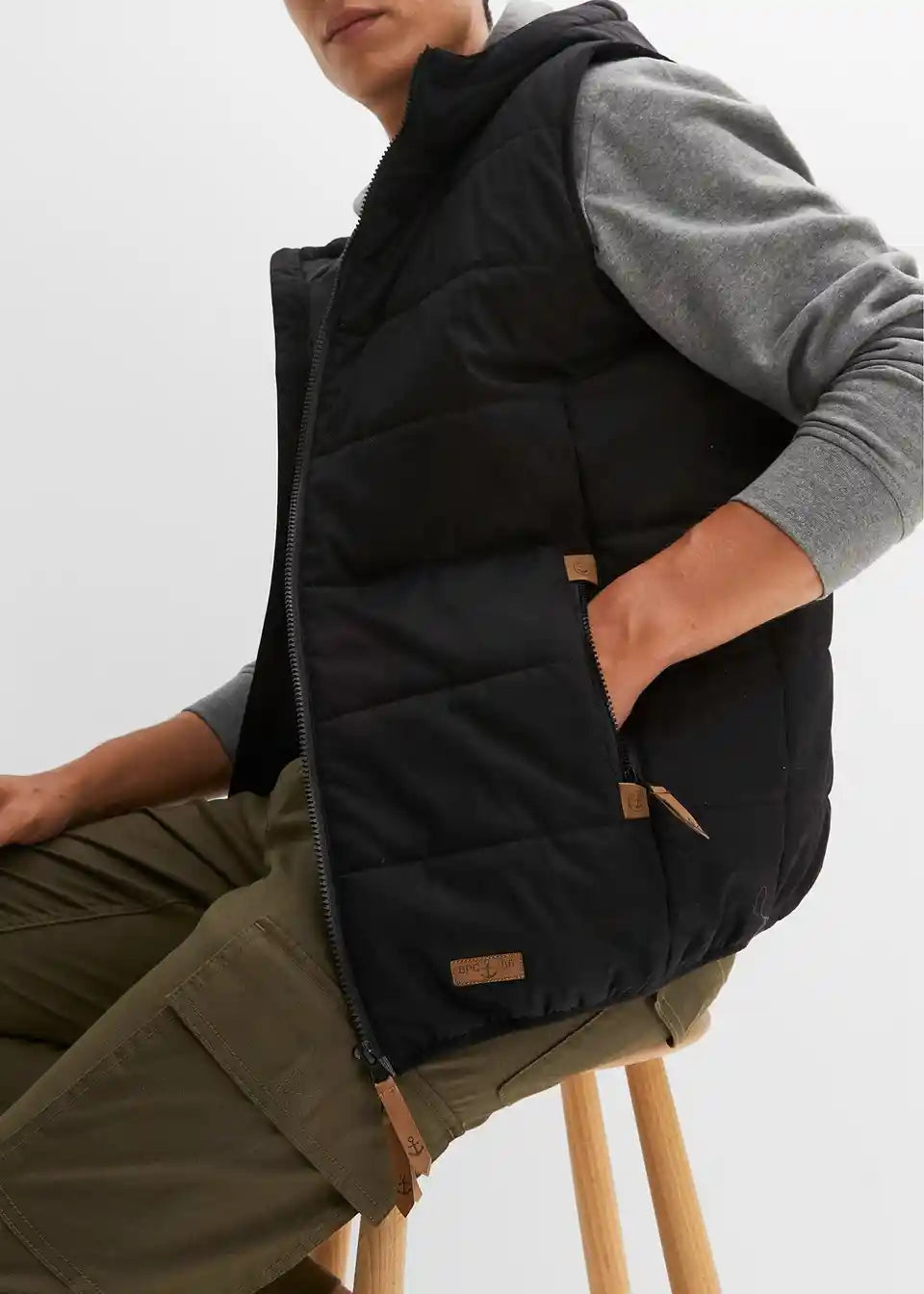 Prošiveni prsluk s kapuljačom i detaljima od imitacije kože