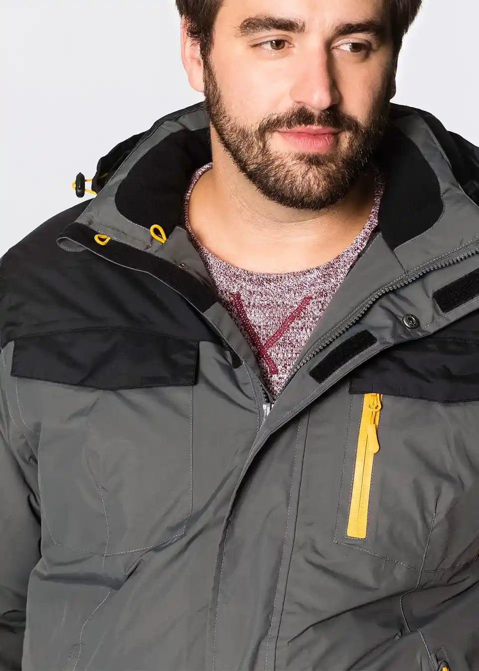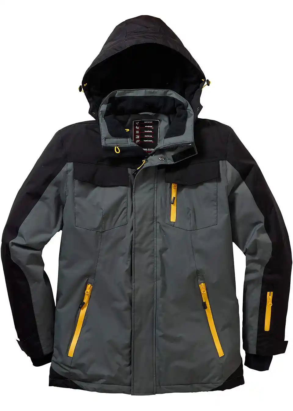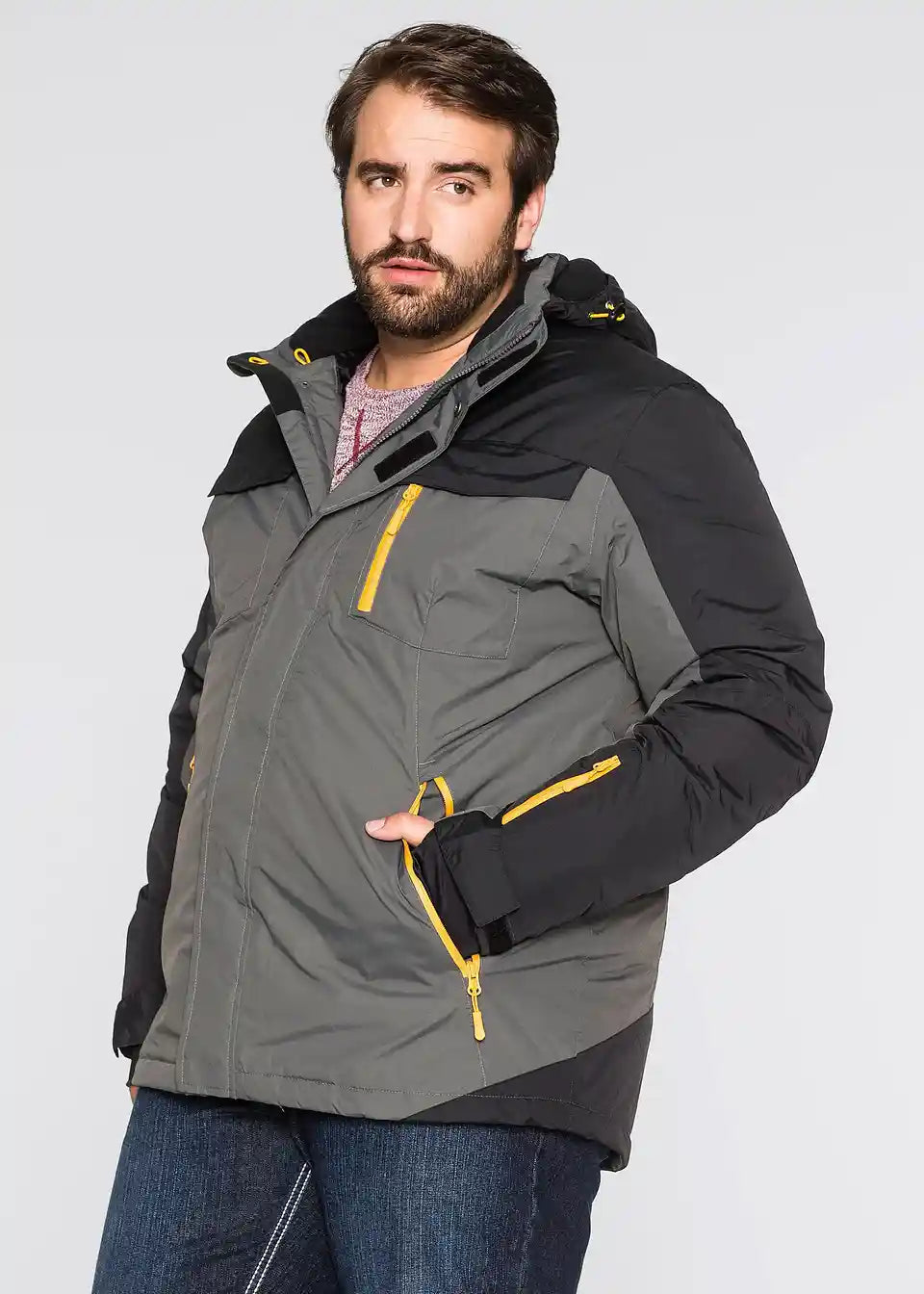 Estetski privlačna zimska funkcionalna jakna spaja korisno s modnim aspektima. Zbog kombinacije materijala prilagođenih za vanjsku upotrebu, jakna je prozračna te otporna na vjetar i vodu do 3.000 mm vodenog stupca. Zavareni šavovi i odvojiva kapuljača dodatno štite od vlage i propuha. Muška zimska funkcionalna jakna iz kolekcije bpc ima skriveni dvosmjerni patentni zatvarač za lako zatvaranje. Dva prednja džepa, prsni džep, džep na rukavu s reflektirajućim printom, kao i dva unutarnja džepa, praktični su detalji za putovanja.