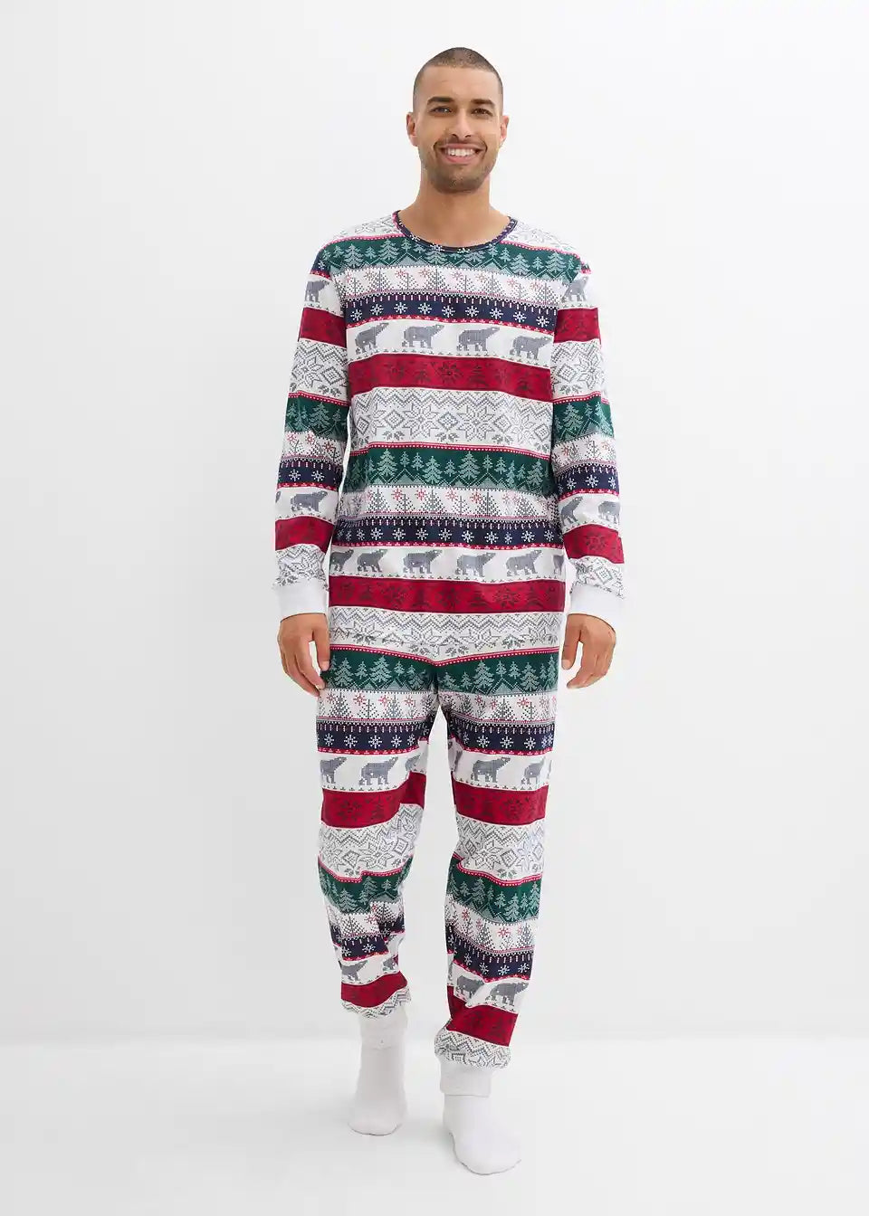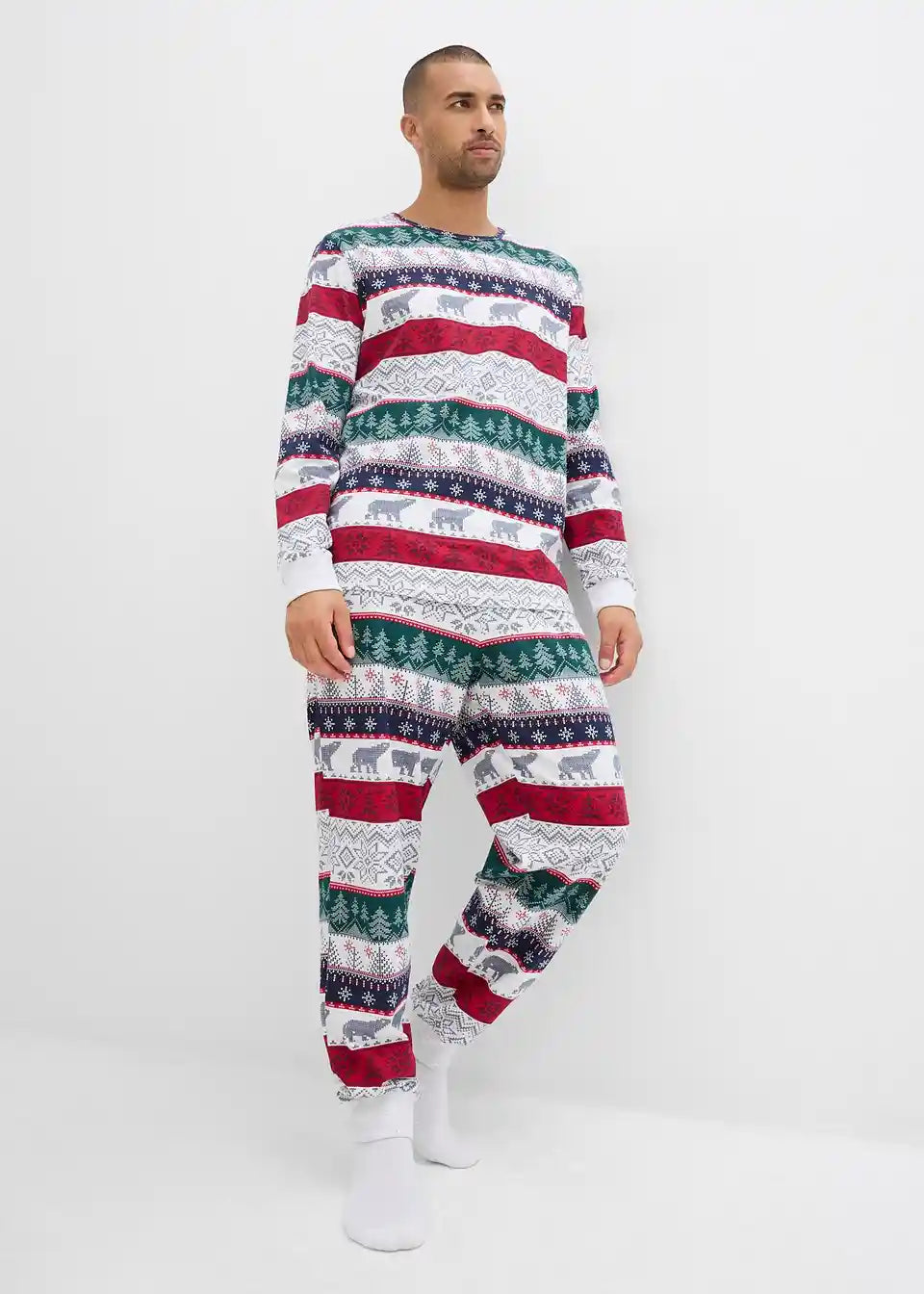 Udobna pidžama s norveškim uzorkom s majicom dugih rukava s visokim ovratnikom i ležerno krojenim hlačama s džepovima