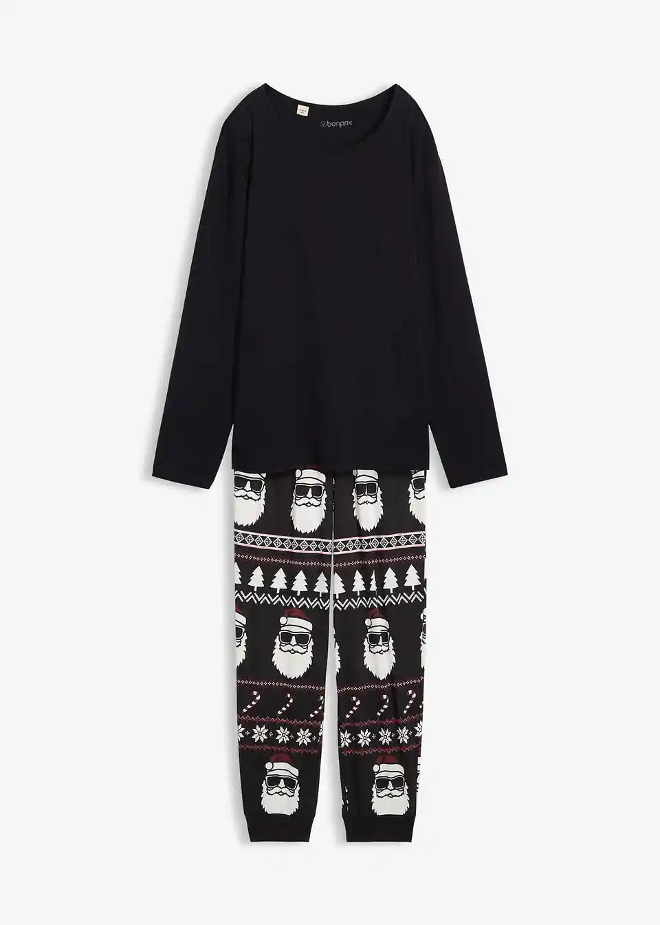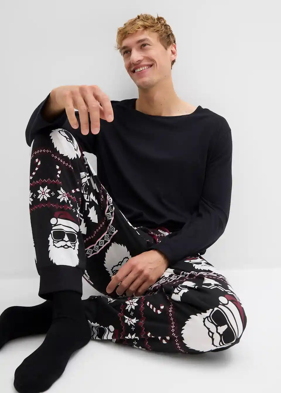 Božićna pidžama s majicom dugih rukava i veselim, tiskanim dugim hlačama. Hlače imaju rebrasti rub na završetku.