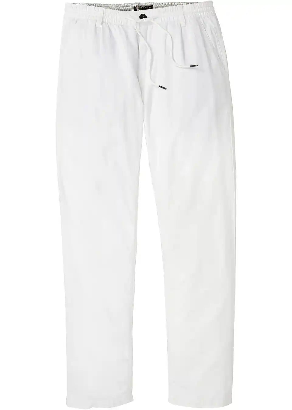 Komotne hlače bez kopčanja s lanom ravnog kroja