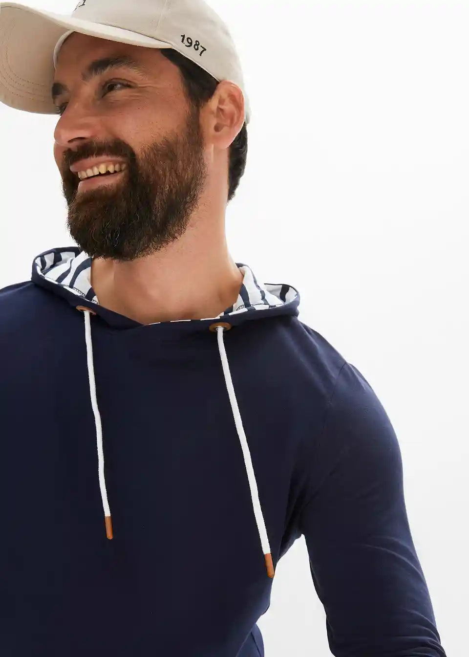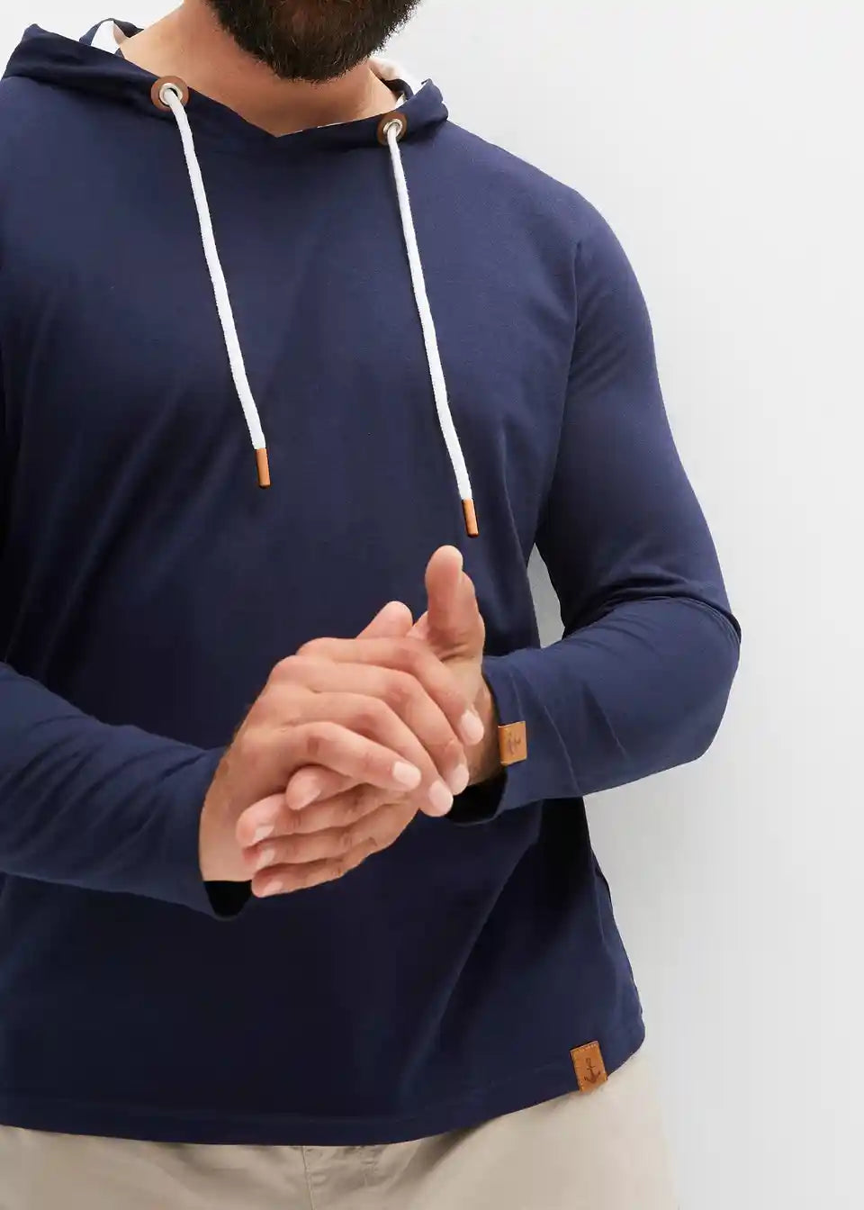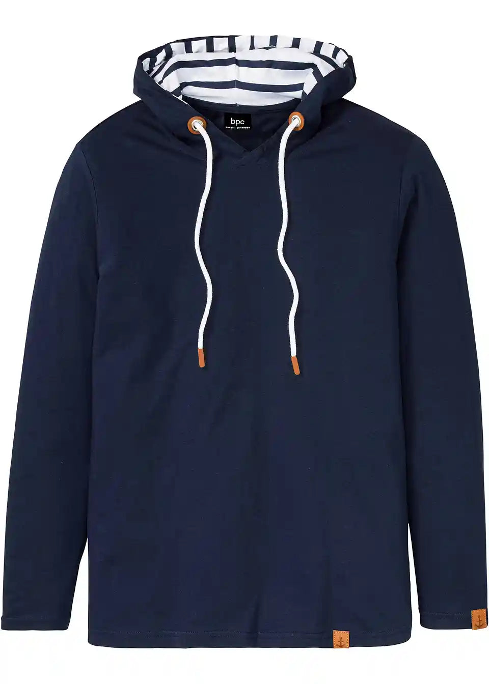 Odlična majica dugih rukava s prugastom podstavom u kapuljači i lijepim detaljima od imitacije kože, prikladna za pranje u perilici rublja