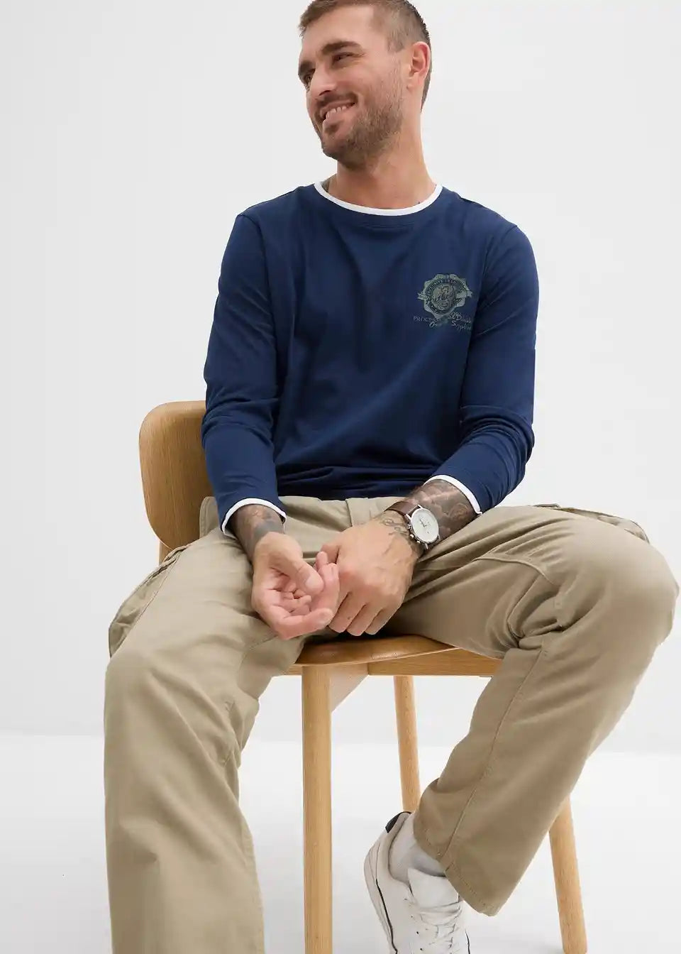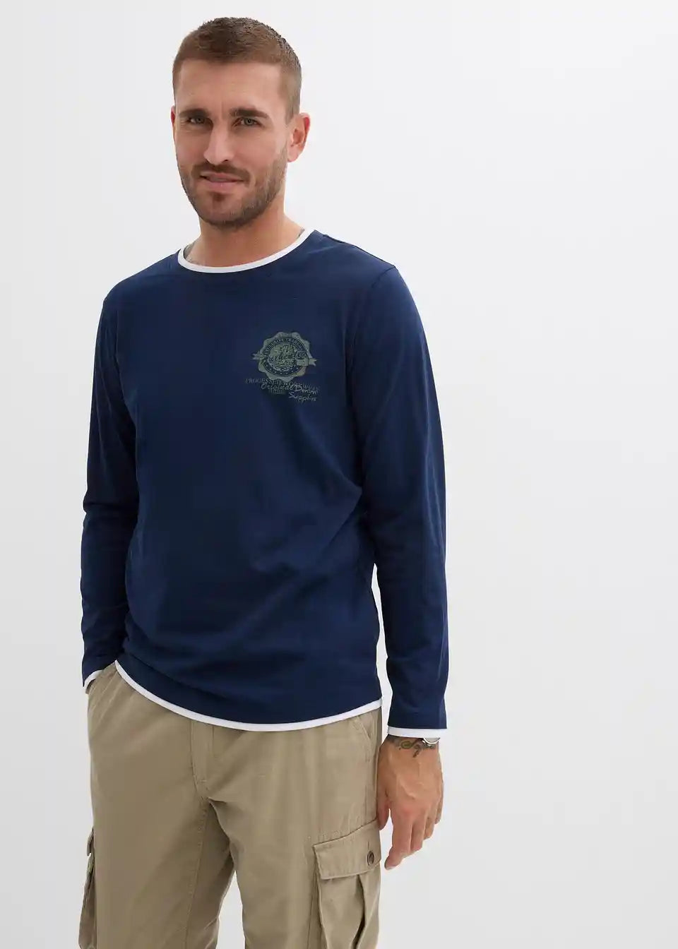 Lijepa majica s dugim rukavima s okruglim izrezom i malim printom na prsima