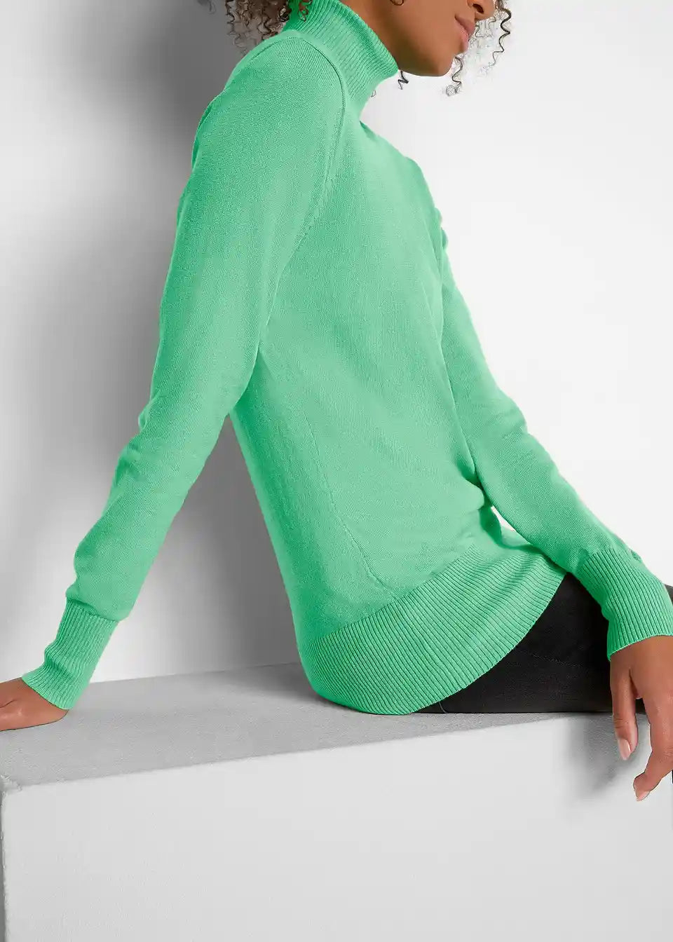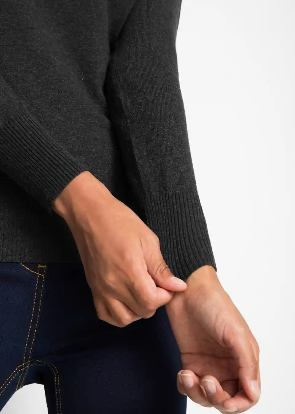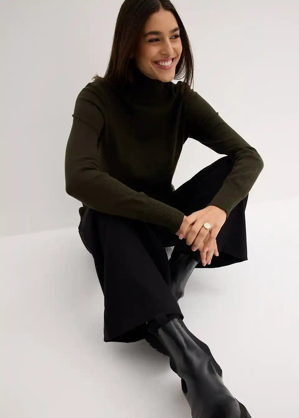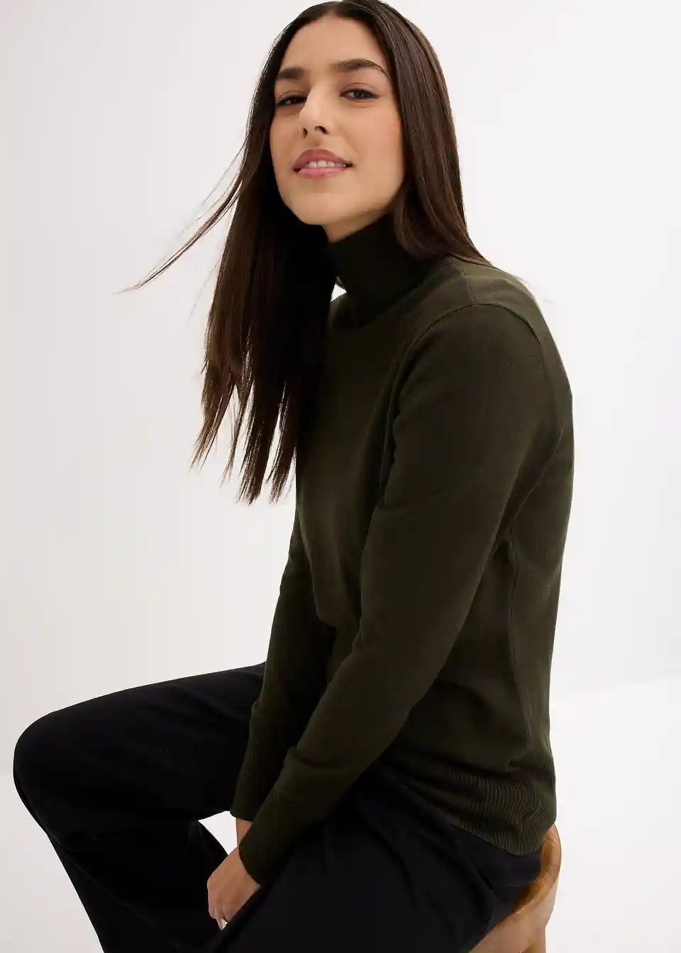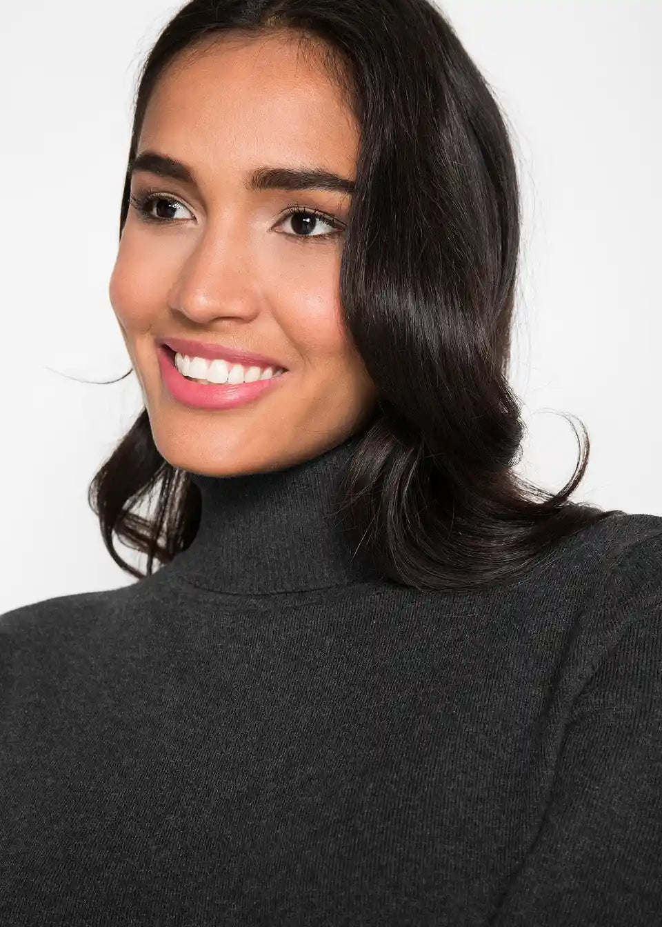 Zahvaljujući visokoj rolki, ovaj pulover brenda bpc djeluje ležerno. Laka fina tkanina osigurava da je pulover posebno mekan i postojan. Široki rubovi na porubu i rukavima naglašavaju ležerni izgled. Ovaj jednostavni osnovni komad pristaje uz uske hlače jednako dobro kao i uz udobne suknje. Raznovrsne mogućnosti kombiniranja čine ovaj pulover s rolkom omiljenim odjevnim predmetom.