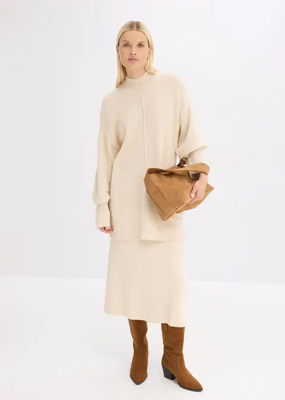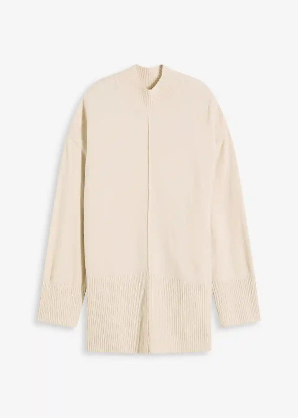 Oversize-pulover s opuštenim ramenima i prorezom straga