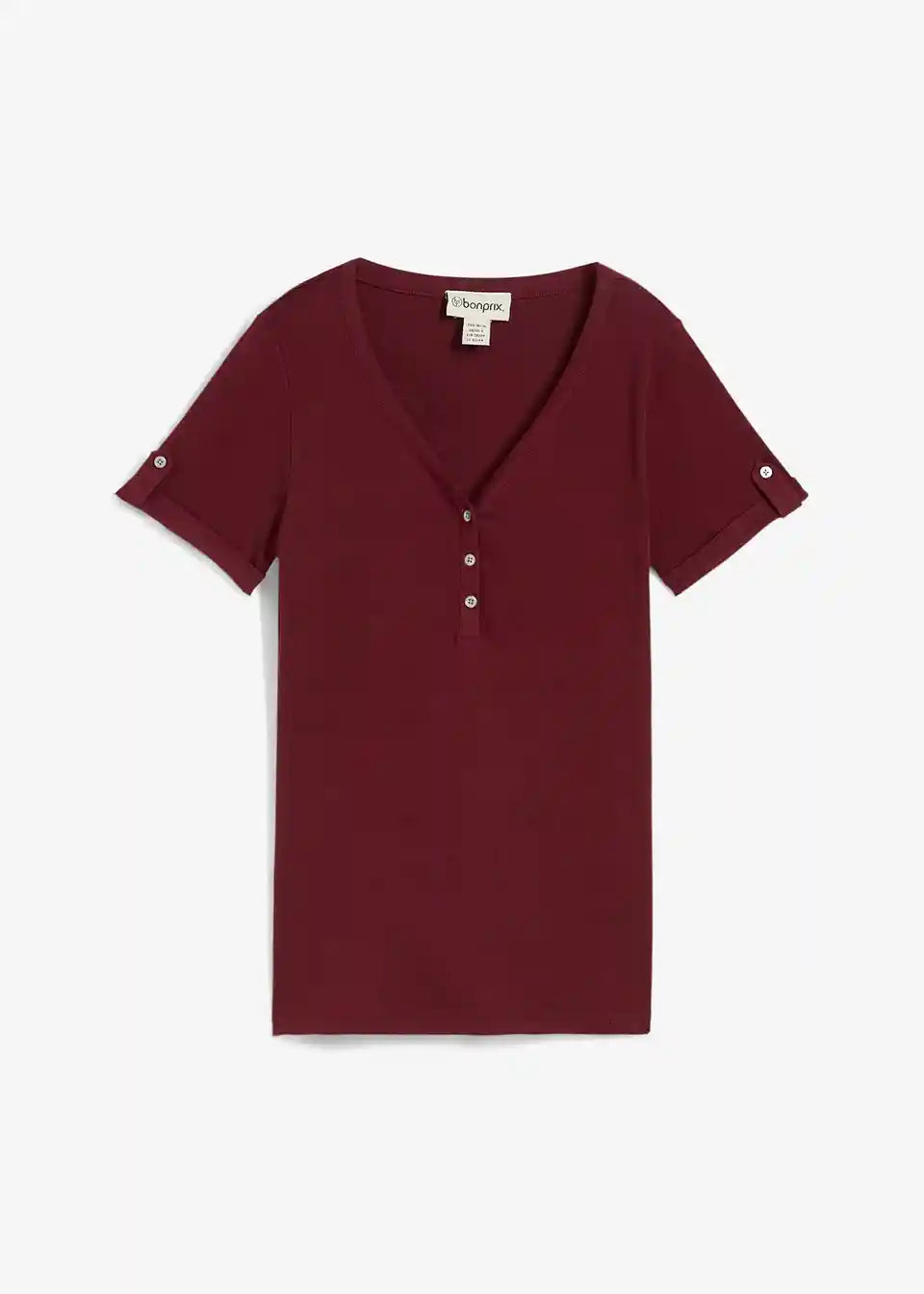 Udobna Henley majica s redom gumba na V-izrezu, od organskog pamuka. Duljina u veličini 40/42 cca 66 cm, može se prati u perilici rublja.