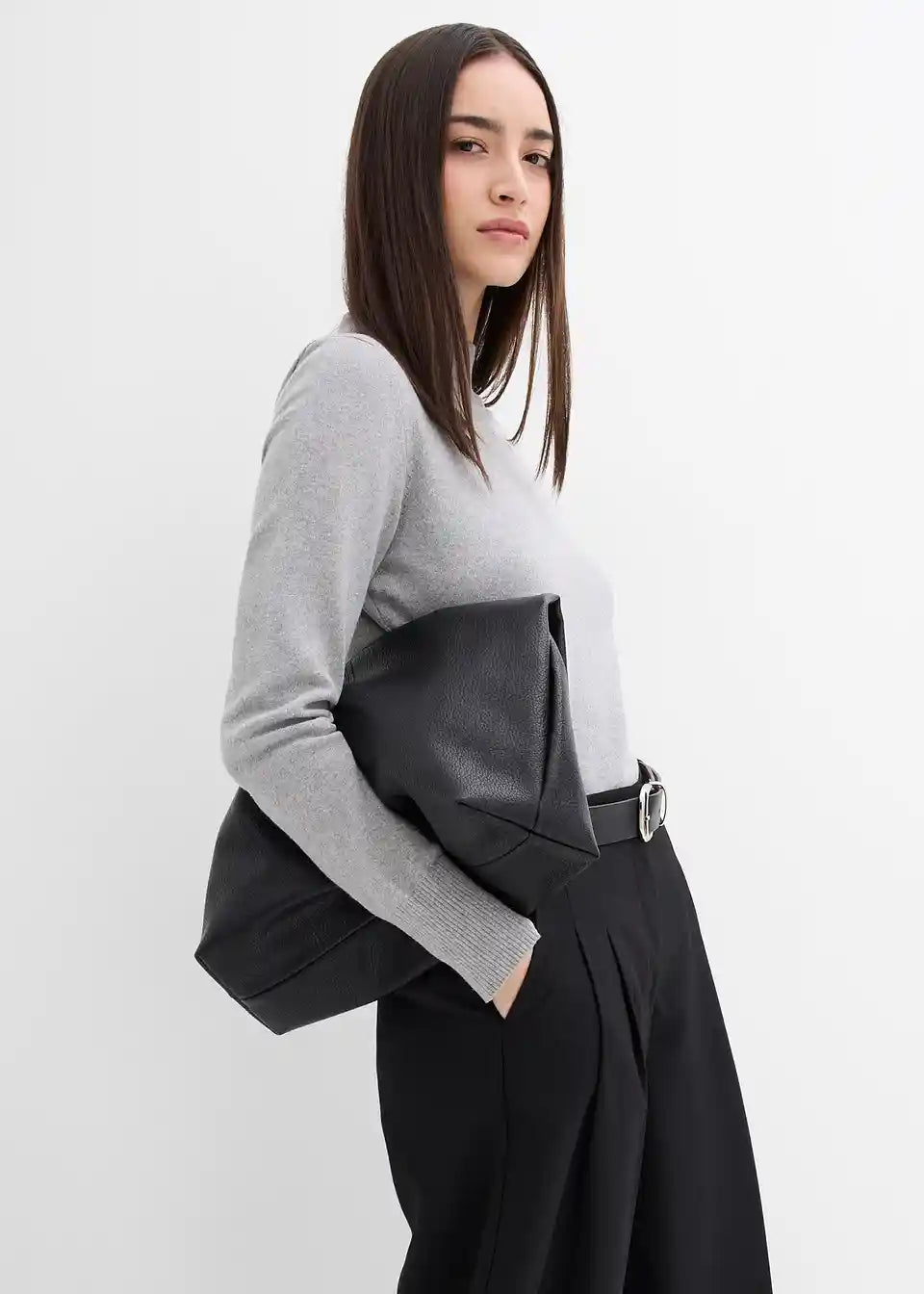 Hlače s naborima u komotnom struku i prorezom