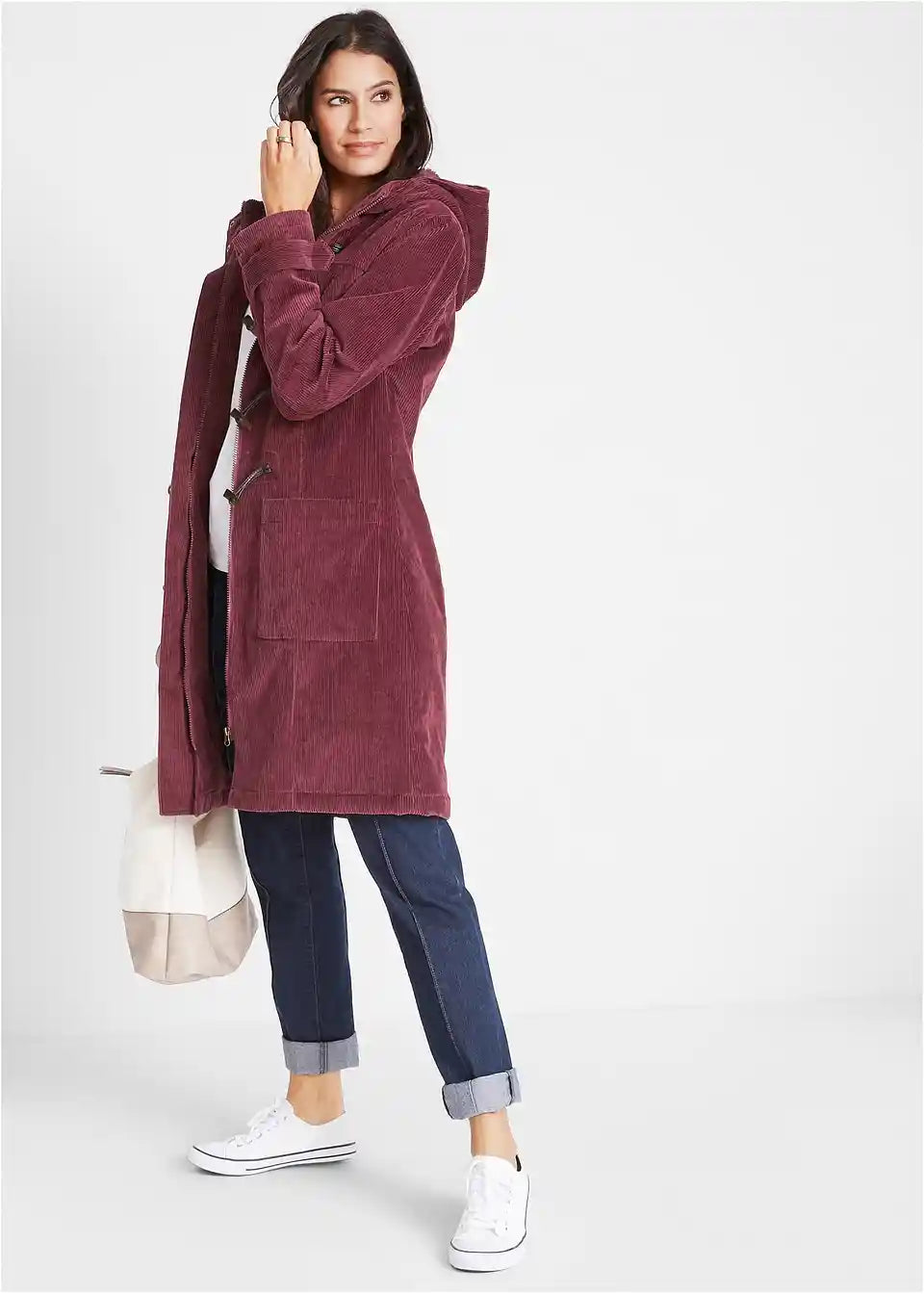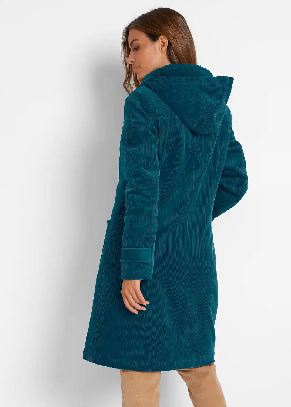 Podstavljeni Dufflecoat od Cord materijala s kapuljačom i ukrasnim kopčama