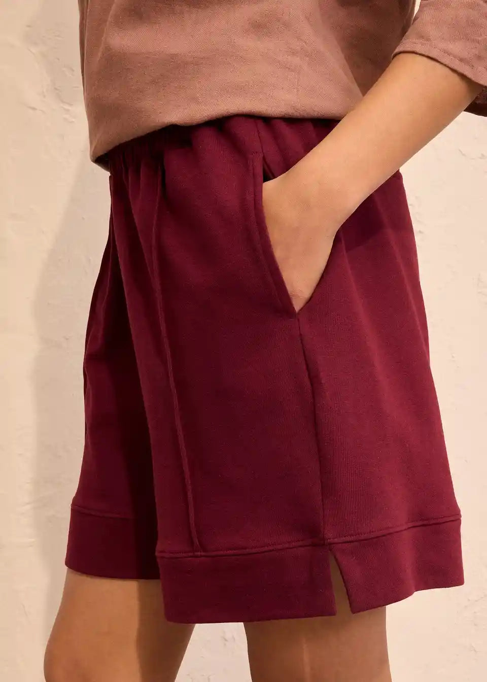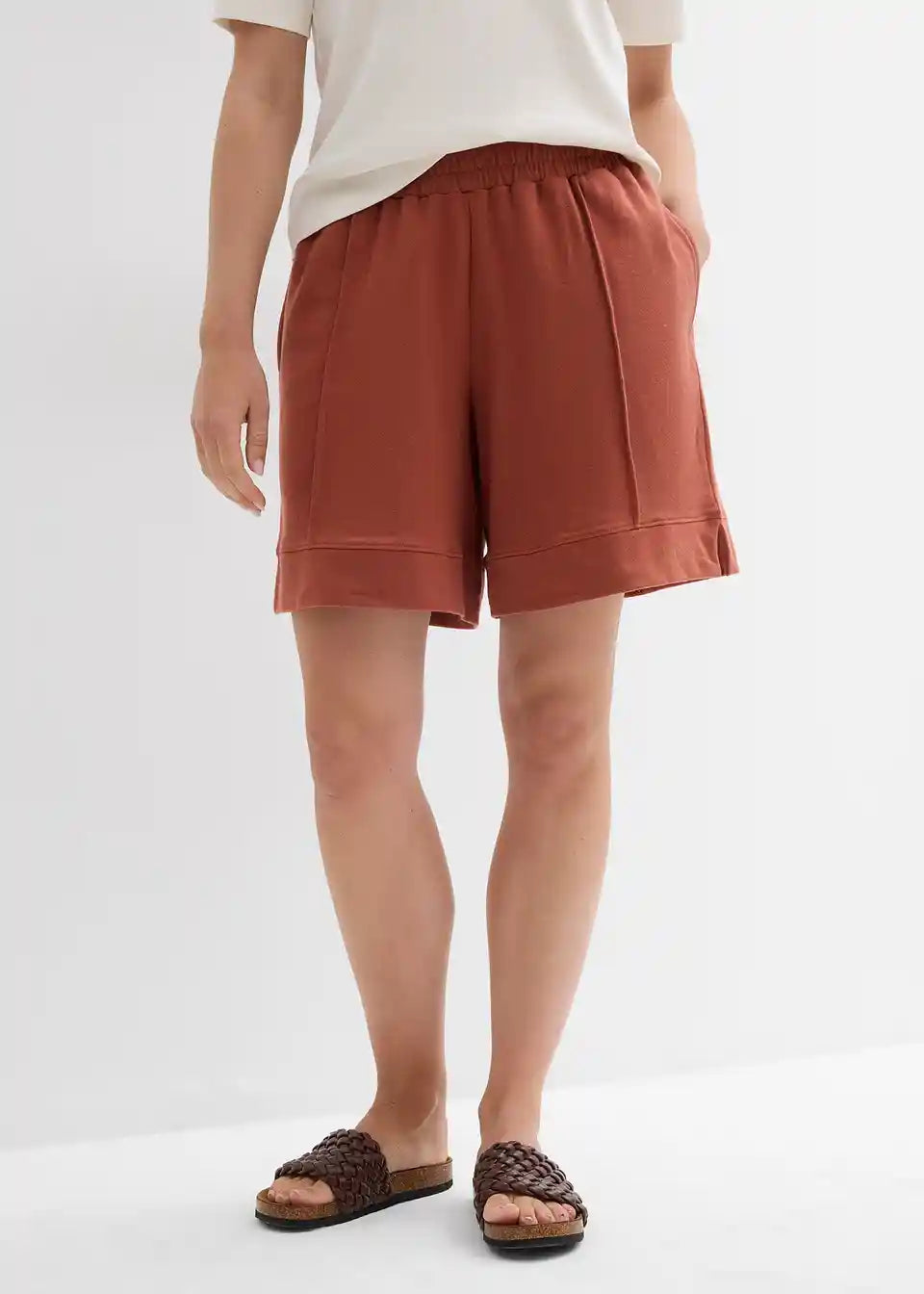 Sweat-Shorts s visokim, elastičnim pojasom. Široki kroj.